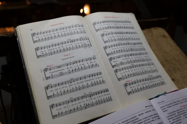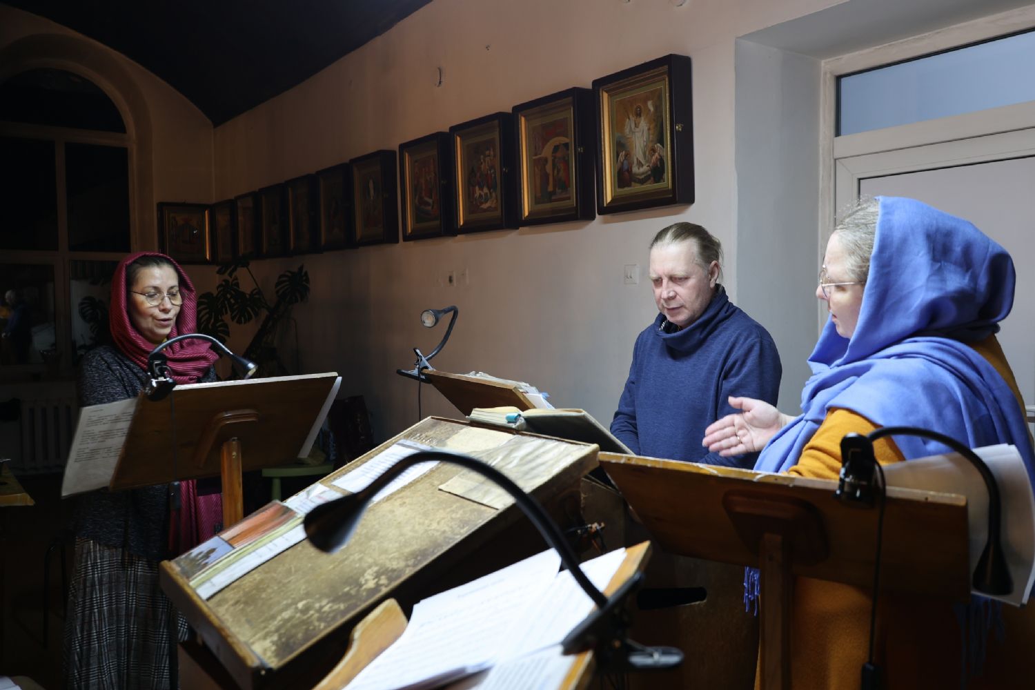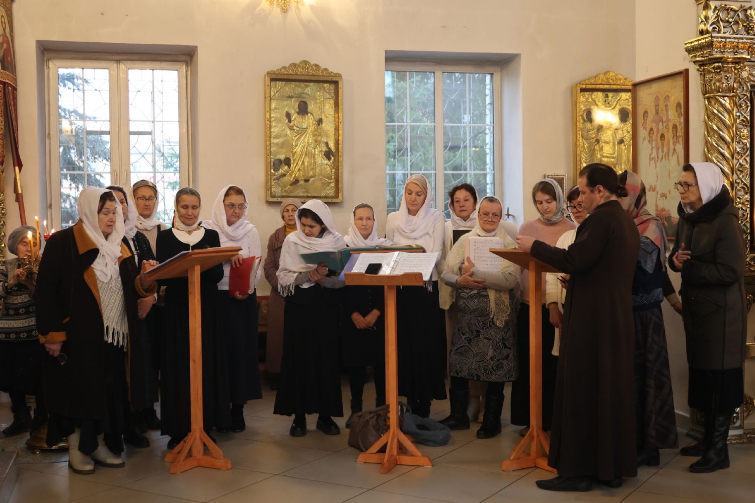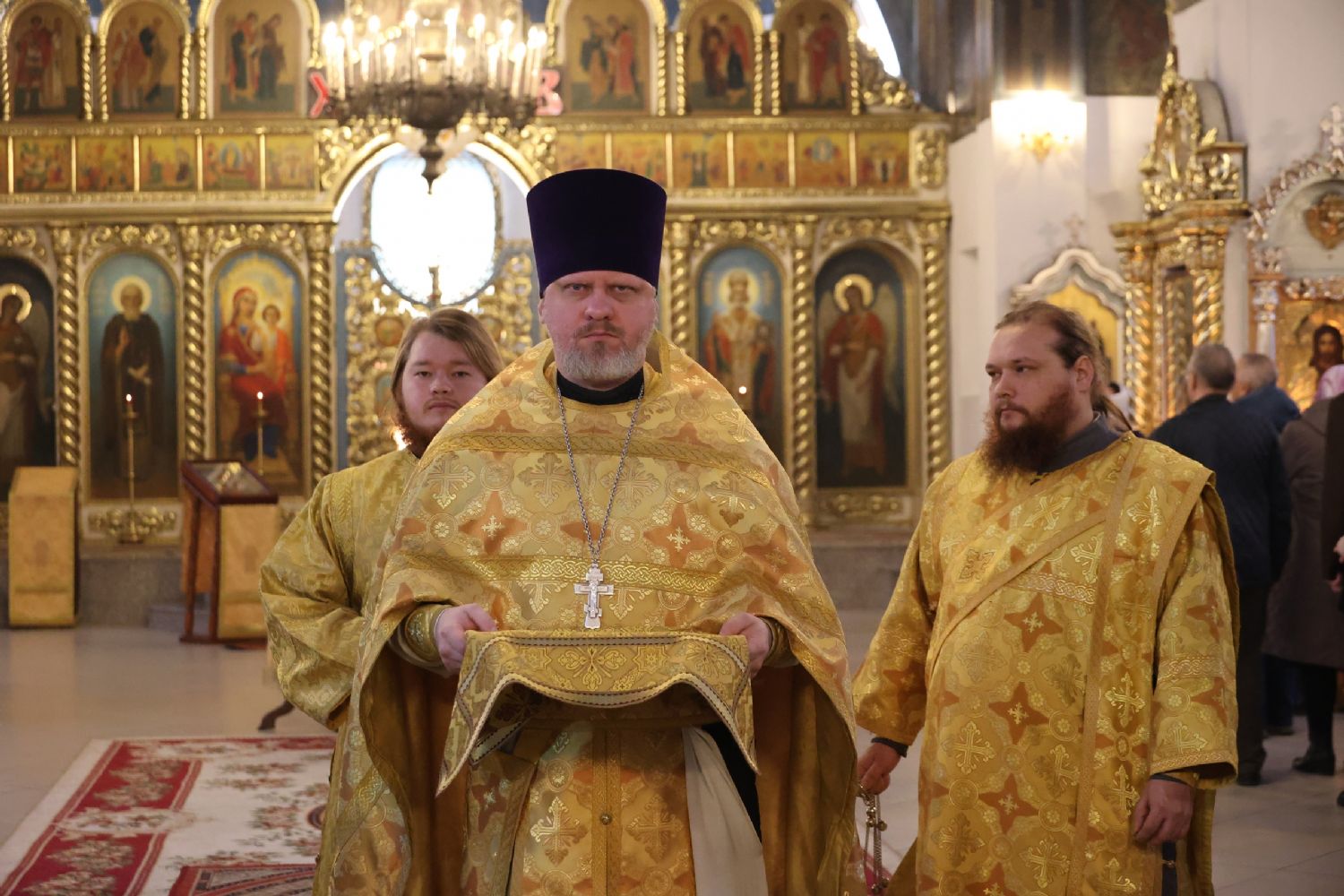 Его Преосвященству сослужили клирики собора, песнопения исполнял архиерейский хор под управлением регента Любови Михеевой. За Литургией также пел народный хор под управлением Евгения Чигарова.