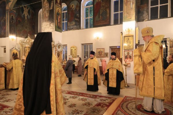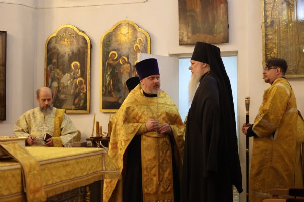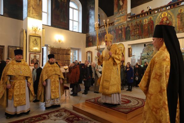 По окончании Литургии владыка обратился к верующим с архипастырским словом, рассказав о житии и трудах преподобного Никона Радонежского, память которого Церковь празднует в этот день.