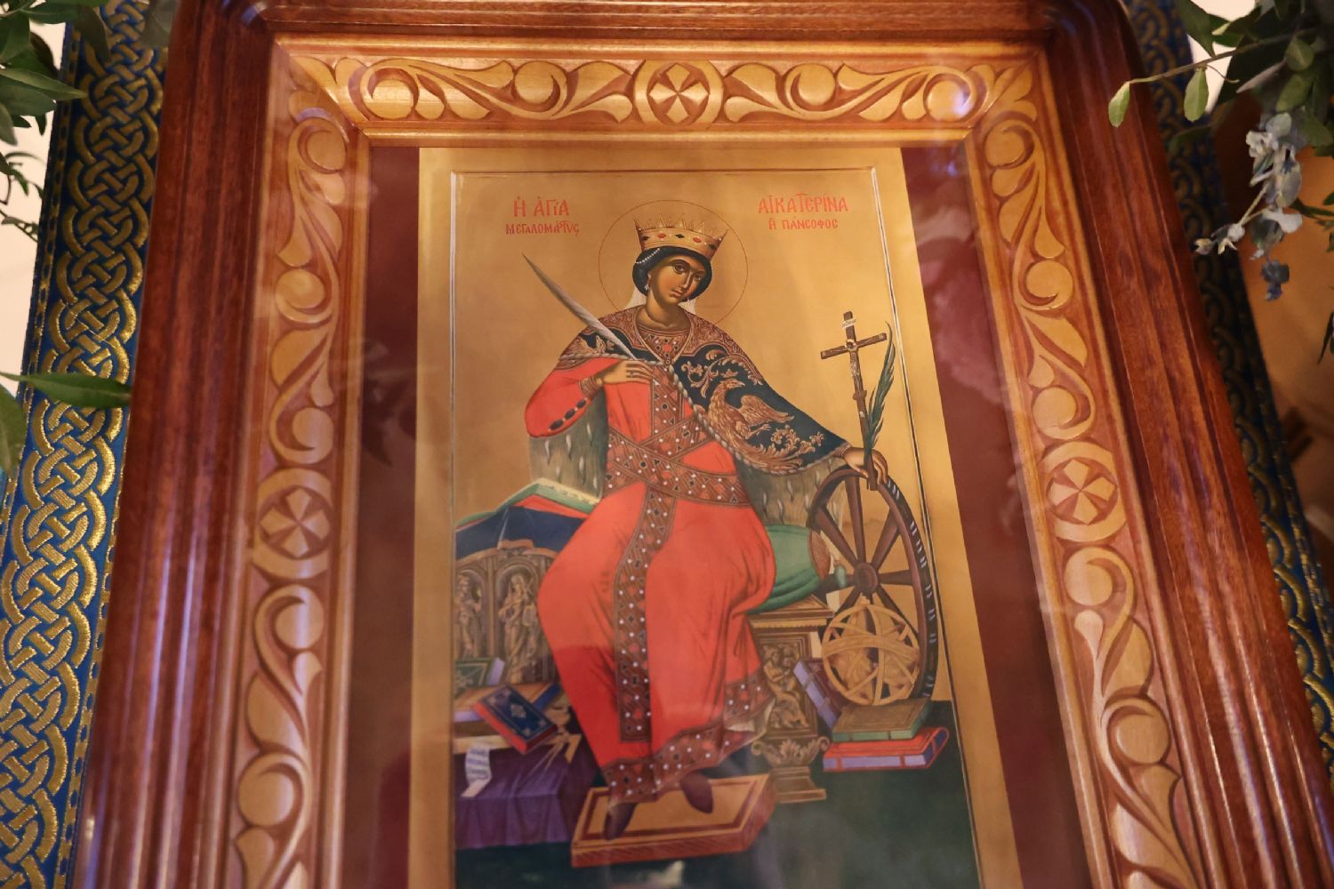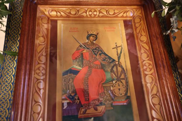 Святая Екатерина родилась в начале IV веке в Александрии в семье знатных христиан. Отличаясь редкой красотой и премудростью, она была желанной невестой для самых богатых и высокопоставленных людей. Но, возлюбив всем сердцем Христа, святая Екатерина уже не желала никаких земных благ. А когда в Александрию прибыл император-язычник Максимин и устроил массовое жертвоприношение ложным богам, святая Екатерина смело обличила его. Император, не теряя надежды склонить юную красавицу к язычеству и сделать ее своей женой, собрал пятьдесят мудрецов, которые должны были повернуть её в сторону зловерия. Но Екатерина, исполнившись Святого Духа, опровергла все заблуждения язычников и сама обратила их к вере во Христа. Эти мужи, уверовав во Христа, по приказу императора были обезглавлены, а святая Екатерина предана на страшные мучения, а затем усечена мечом. Ее мощи были перенесены ангелами на гору Синай.