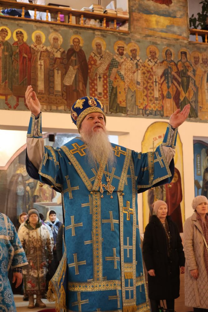 Архипастырю сослужили клирики собора протоиерей Виталий Михеев, иерей Николай Аникин, иеромонах Александр (Чеборов), иеромонах Питирим (Мосякин), диакон Иоанн Захаров и диакон Александр Викторов. Песнопения исполнял народный хор под управлением Евгения Чигарова.