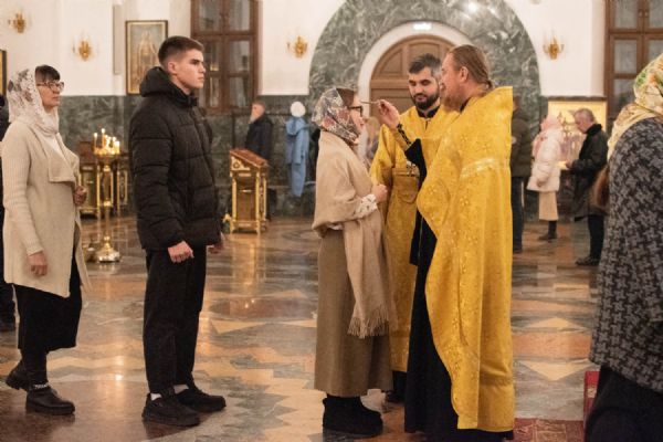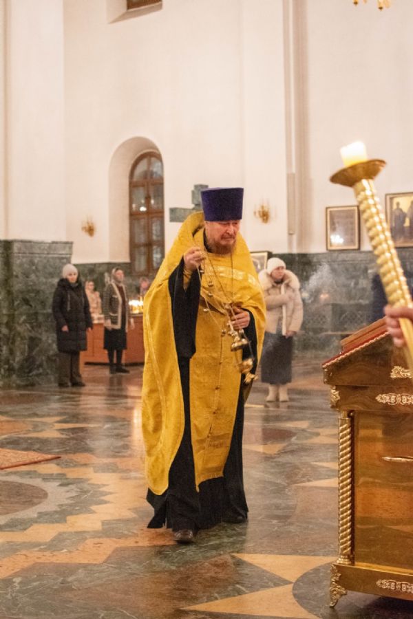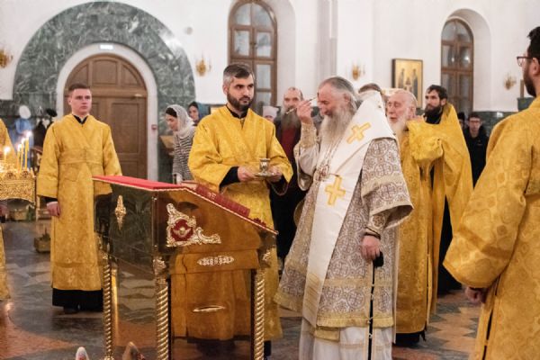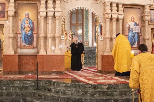 Владыке сослужили ключарь кафедрального собора протоиерей Сергий Поглазов, клирики собора иереи Никифор Захаров, Евгений Самойлов, Александр Староверов, Иоанн Милютин, диакон Артемий Бобоч, а также протодиакон Михаил Козловский. Песнопения исполняли старший и младший составы архиерейского детско-юношеского хора «Благовест» под управлением регентов Татьяны Черновой и Надежды Поздеевой.