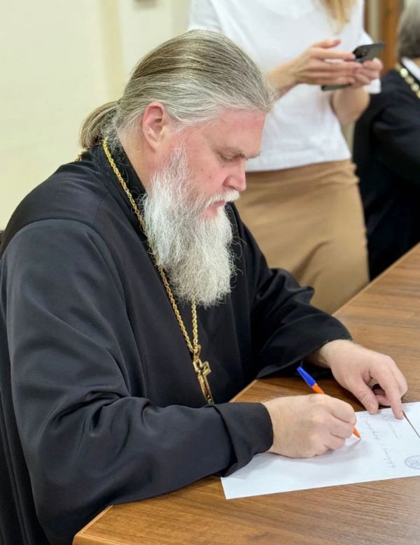 По окончании богослужения ректор Донской духовной семинарии протоиерей Тимофей Фетисов зачитал приветственный адрес председателя Синодального отдела по взаимодействию с Вооруженными силами и правоохранительными органами, председателя Синодального комитета по взаимодействию с казачеством митрополита Ставропольского и Невинномысского Кирилла, который был направлен им в связи с первым выпуском магистерской программы «Государственно-конфессиональные отношения» с военно-пастырским модулем Донской духовной семинарии.