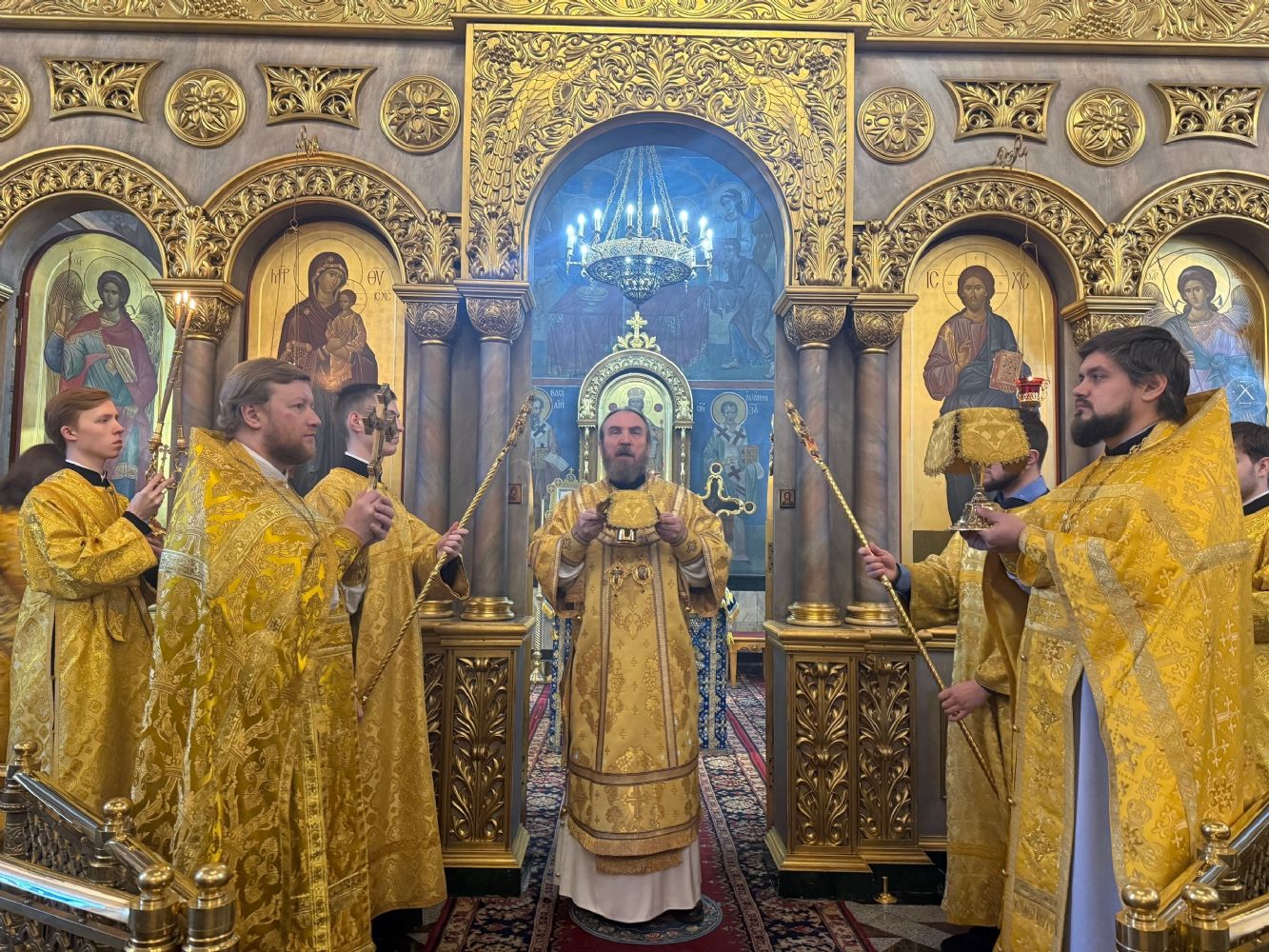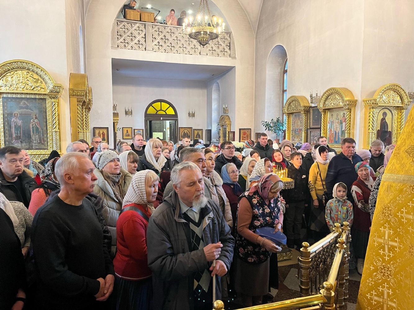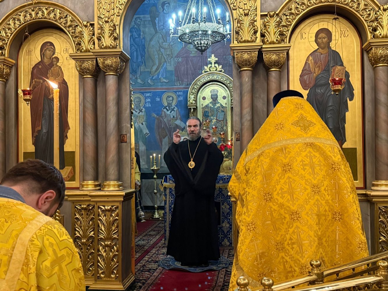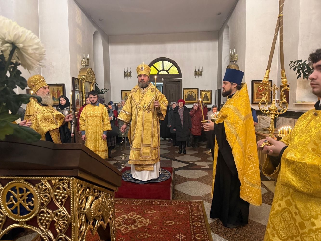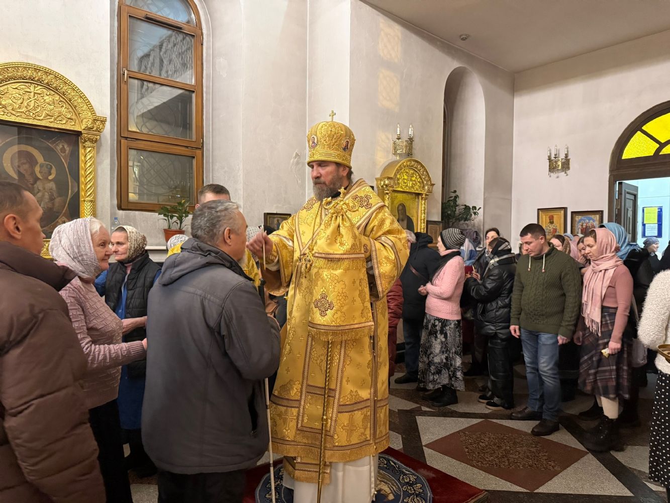 Его Преосвященству сослужили настоятель храма протоиерей Сергий Филонов, клирики храма иерей Никита Иванов, иерей Вячеслав Булычев и диакон Александр Мельников. Песнопения исполнял хор храма под управлением регента Ольги Акилбаевой.