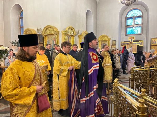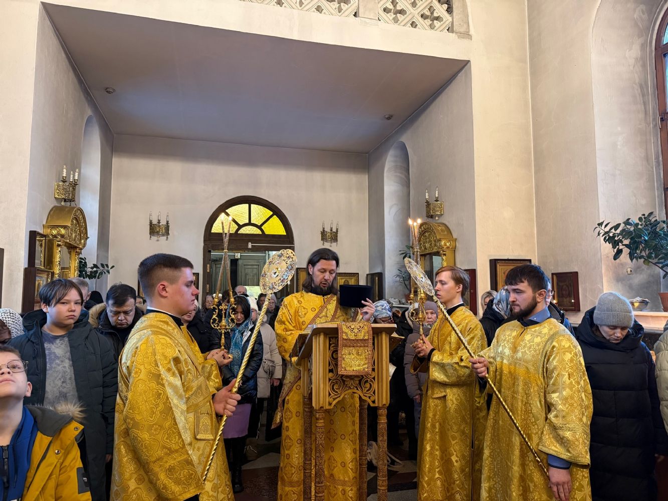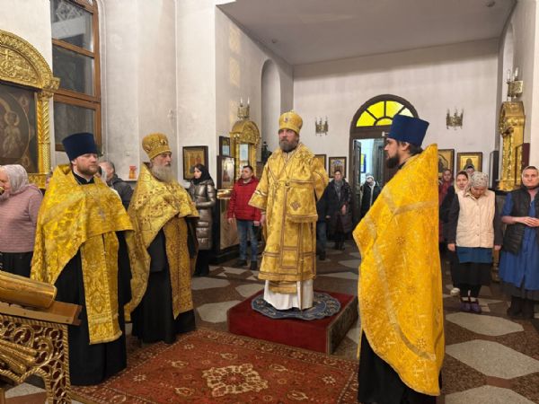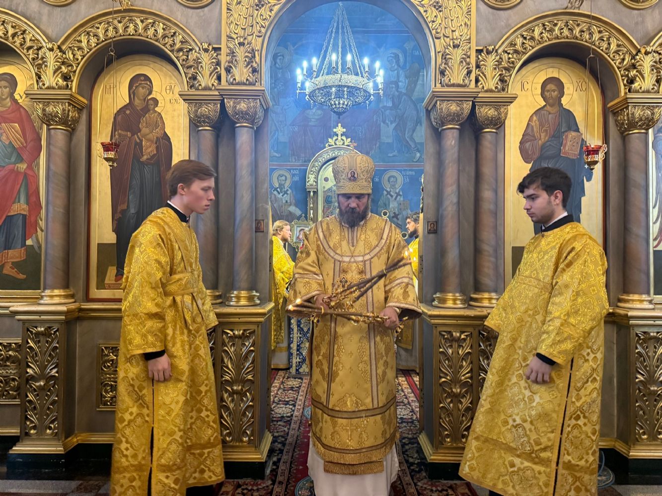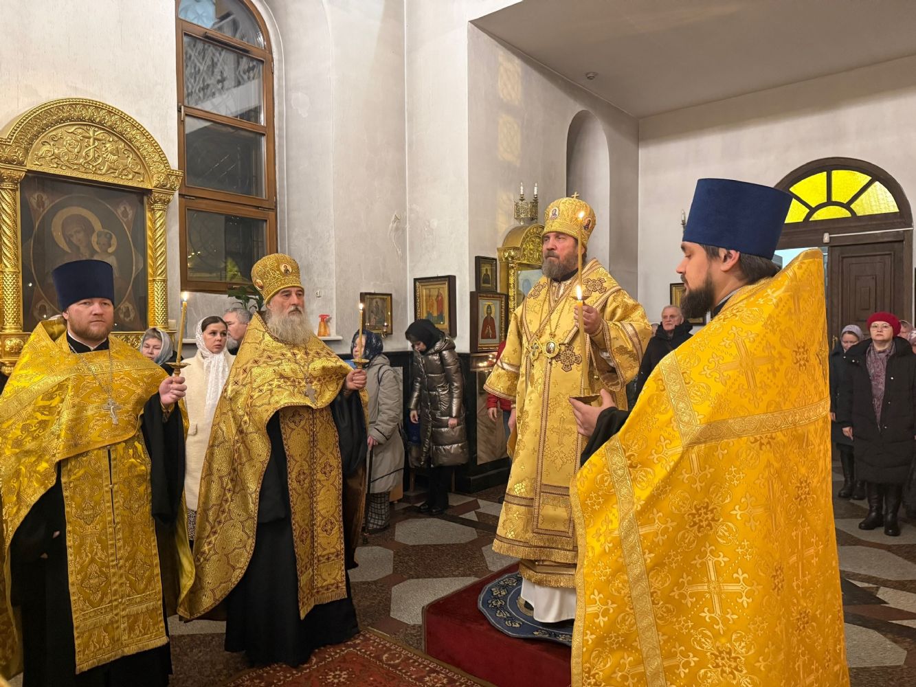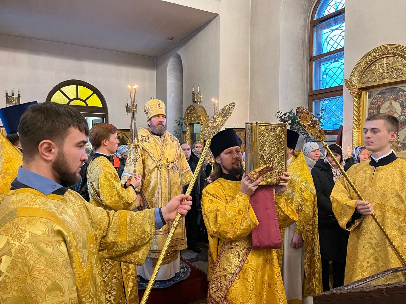 Его Преосвященству сослужили настоятель храма протоиерей Сергий Филонов, клирики храма иерей Никита Иванов, иерей Вячеслав Булычев и диакон Александр Мельников. Песнопения исполнял хор храма под управлением регента Ольги Акилбаевой.