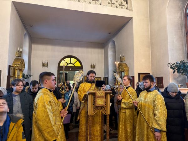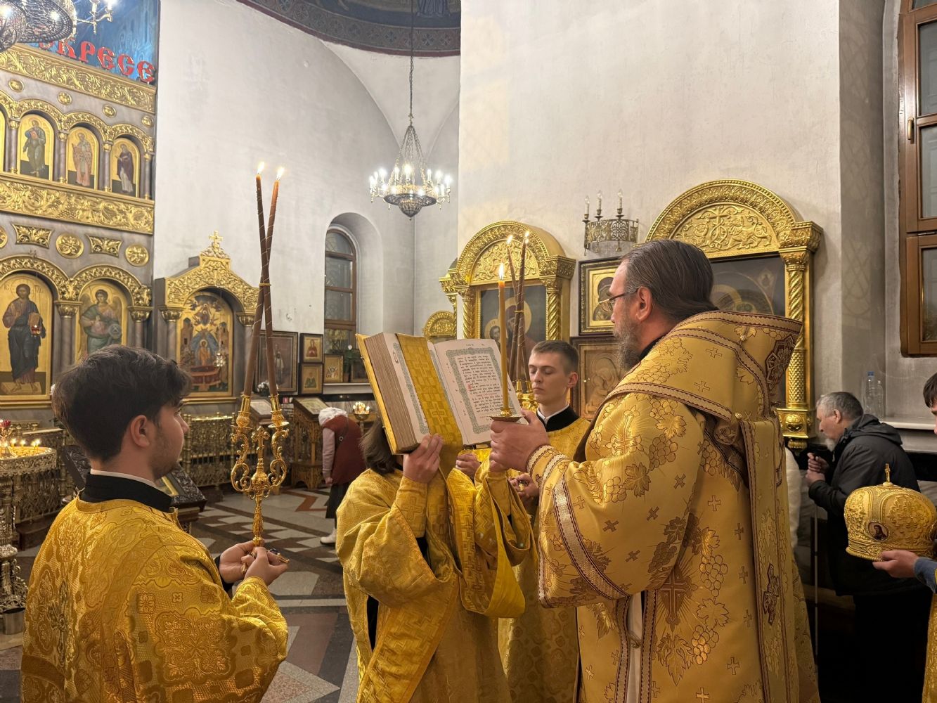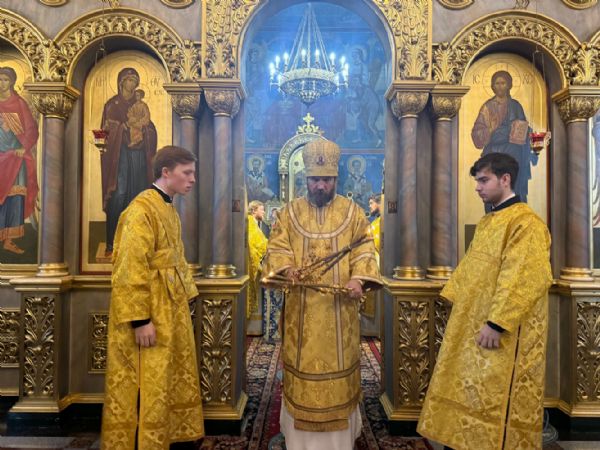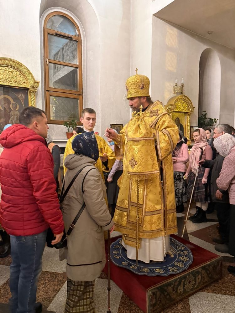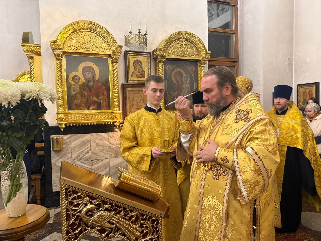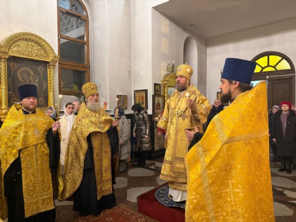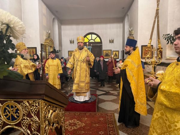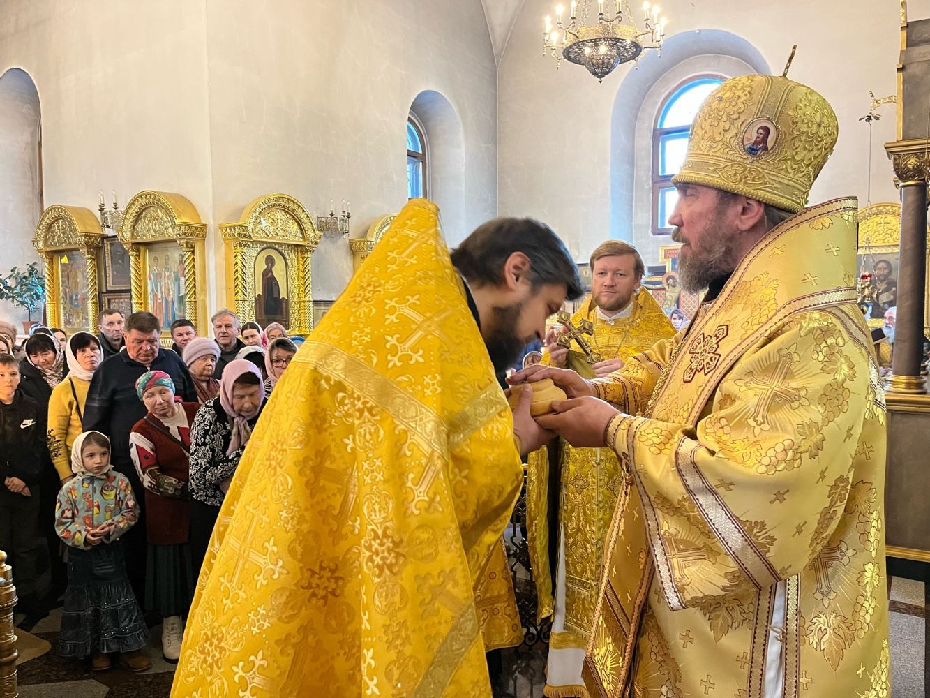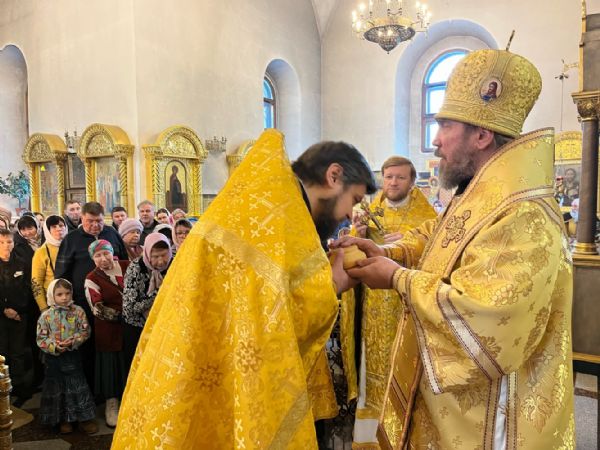 Его Преосвященству сослужили настоятель храма протоиерей Сергий Филонов, клирики храма иерей Никита Иванов, иерей Вячеслав Булычев и диакон Александр Мельников. Песнопения исполнял хор храма под управлением регента Ольги Акилбаевой.