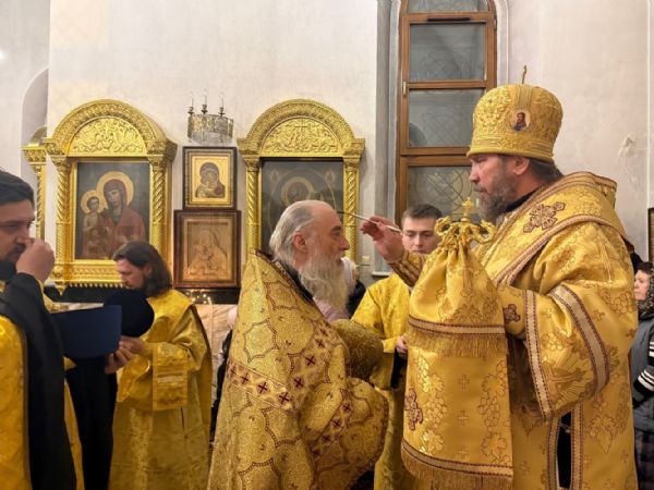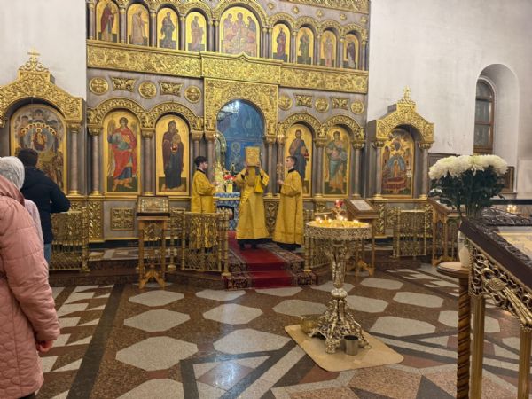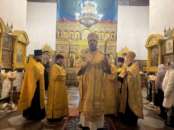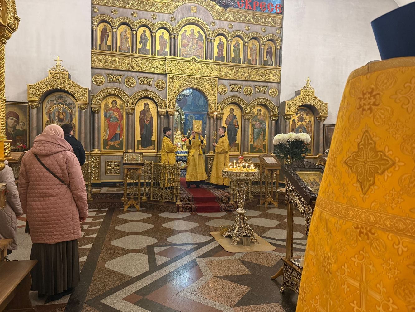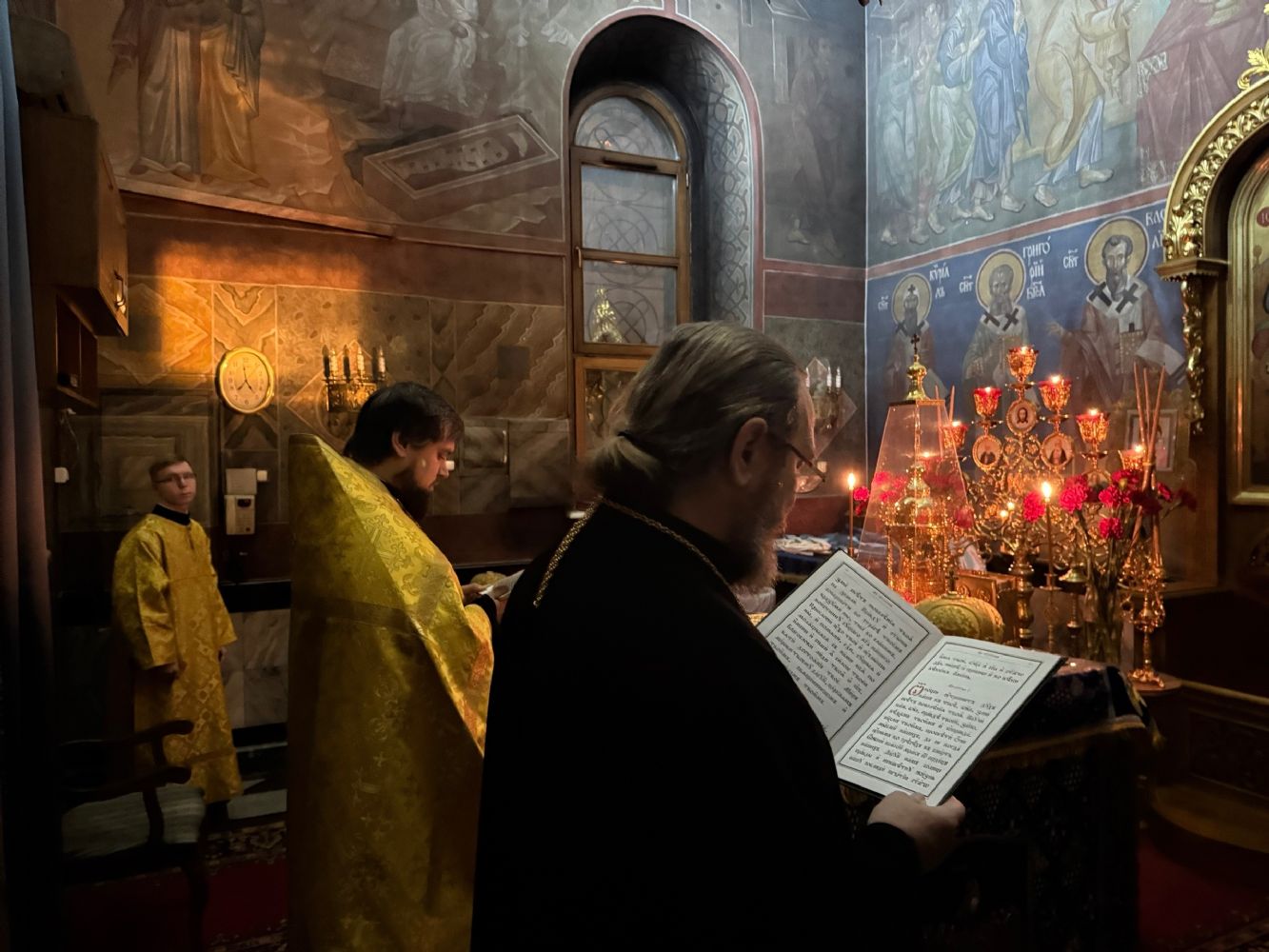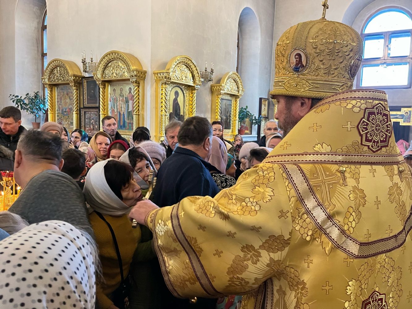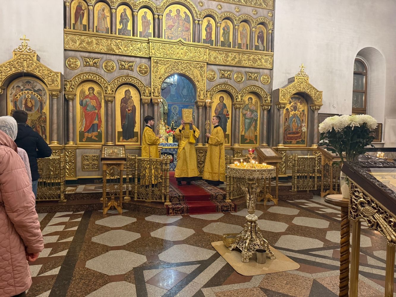 Его Преосвященству сослужили настоятель храма протоиерей Сергий Филонов, клирики храма иерей Никита Иванов, иерей Вячеслав Булычев и диакон Александр Мельников. Песнопения исполнял хор храма под управлением регента Ольги Акилбаевой.
