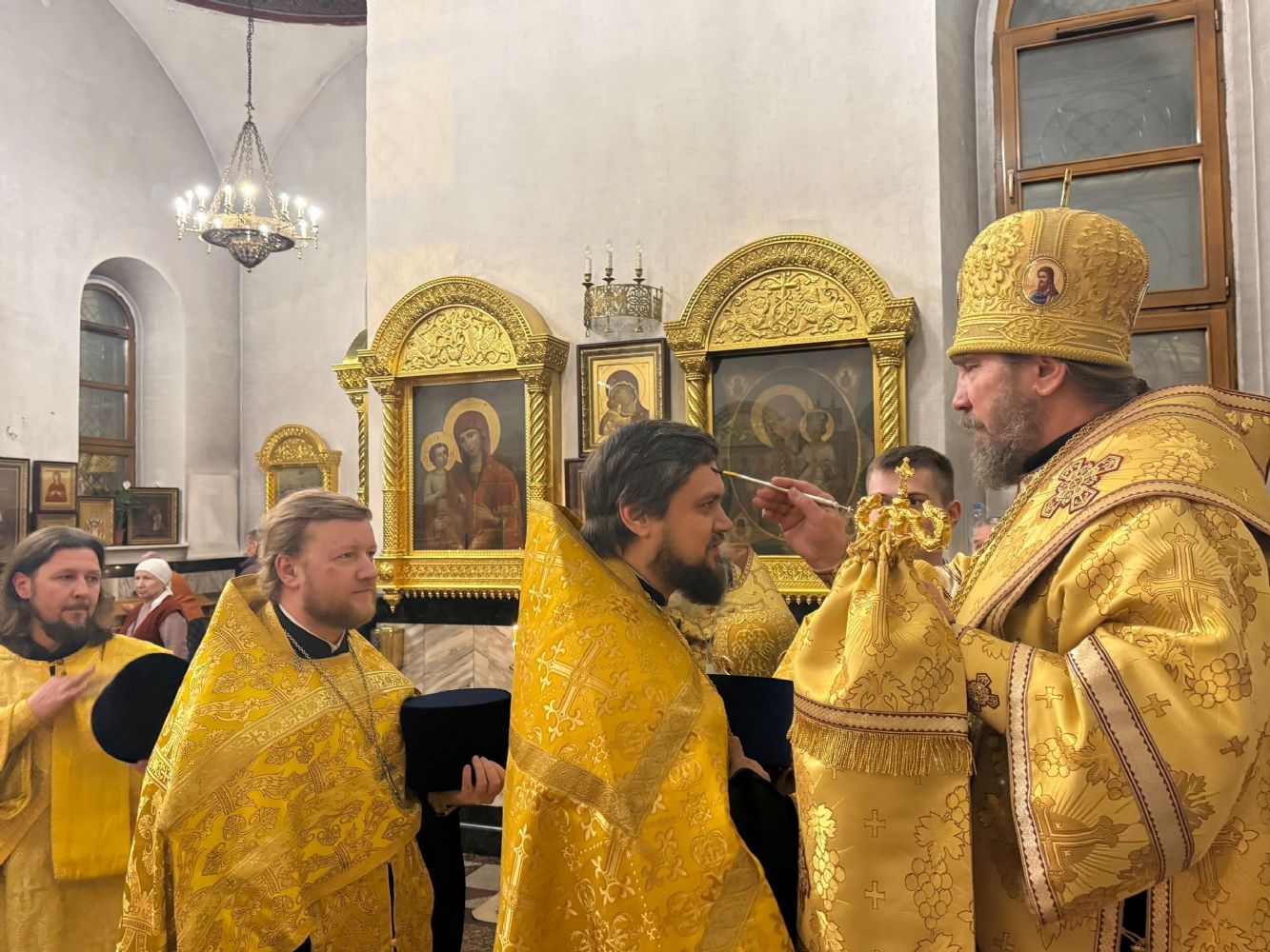 В завершение владыка тепло поздравил иерея Никиту Иванова с 40-летием и вручил ему Богородичную просфору.