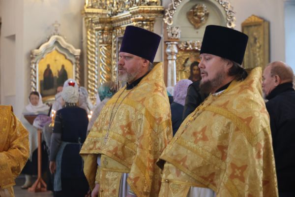 За Литургией архипастырю сослужили клирики кафедрального собора иерей Николай Аникин, иеромонах Александр (Чеборов), иерей Сергий Першаков, иеромонах Питирим (Мосякин), диакон Иоанн Захаров и диакон Александр Викторов. Песнопения исполняли два хора – архиерейский (регент Любовь Михеева) и народный под управлением Евгения Чигарова.