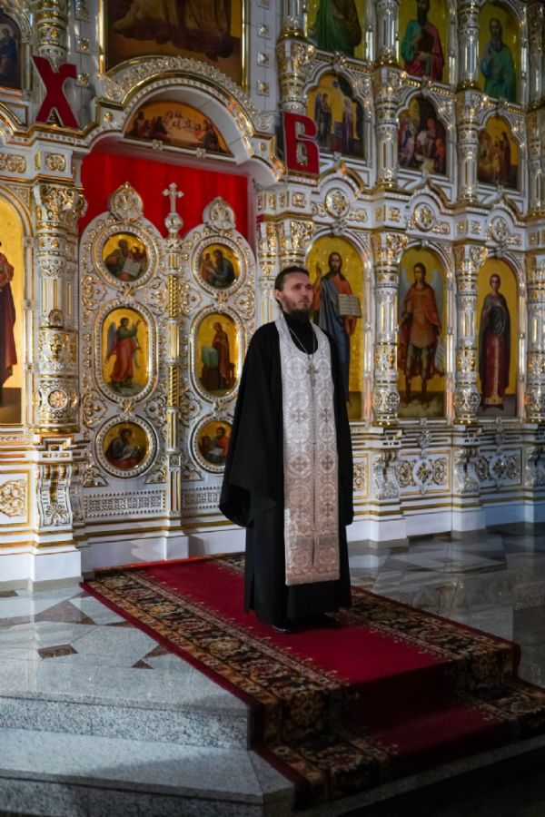 Архипастырю сослужили настоятель собора иерей Андрей Кочаков, клирики собора иерей Леонид Вылекжанин, иерей Димитрий Лукьянов и диакон Алексий Кузнецов, а также протодиакон Михаил Козловский. Песнопения исполнял хор собора под управлением Алисы Вылегжаниной.