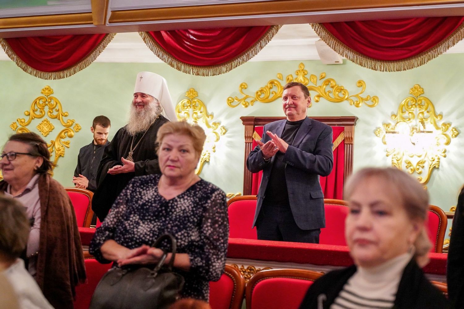 Концерт открыл академический хор колледжа культуры им. Палантая, исполнив рождественский тропарь, затем митрополит Иоанн обратился к собравшимся в переполненном зале зрителям с архипастырским словом.