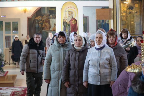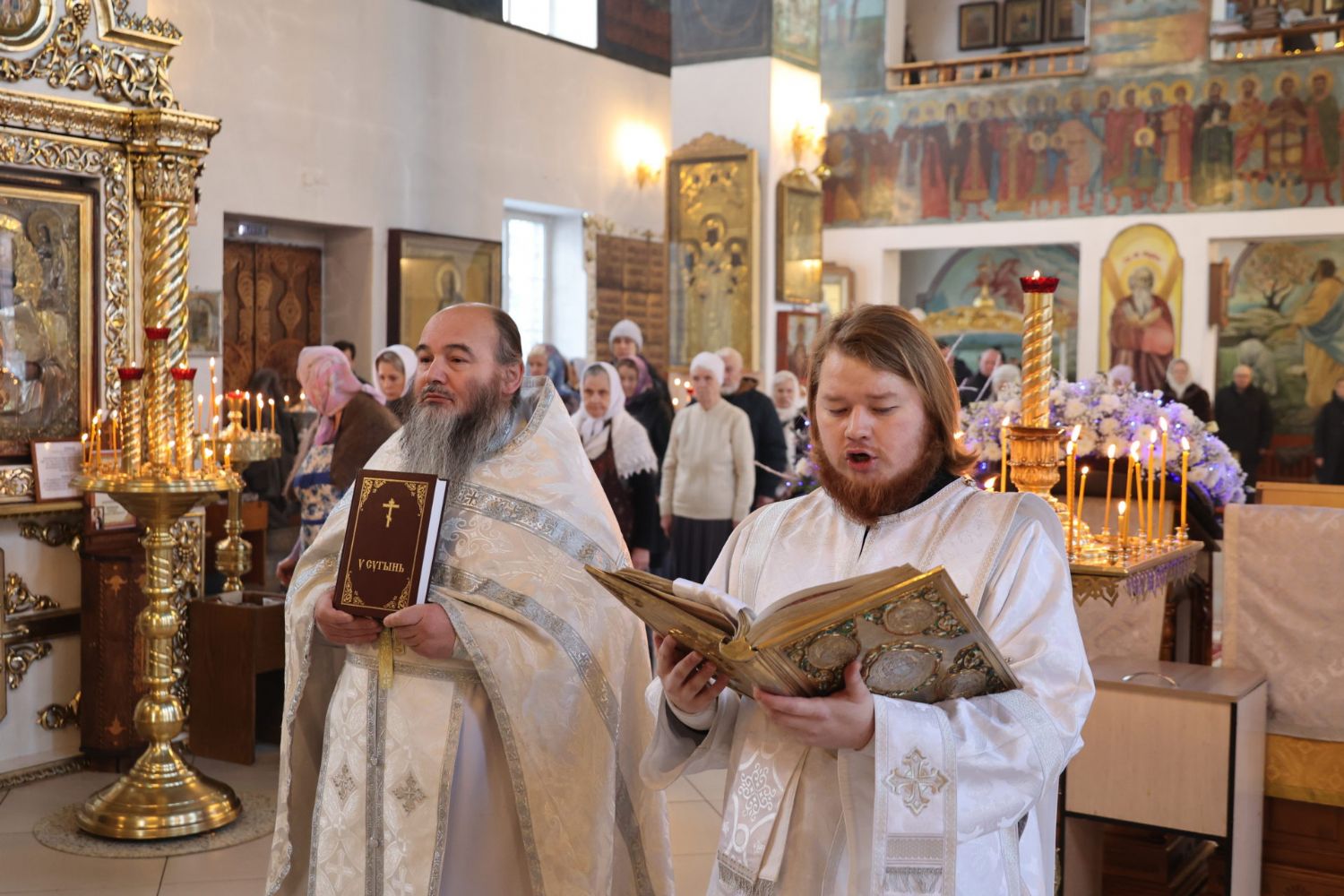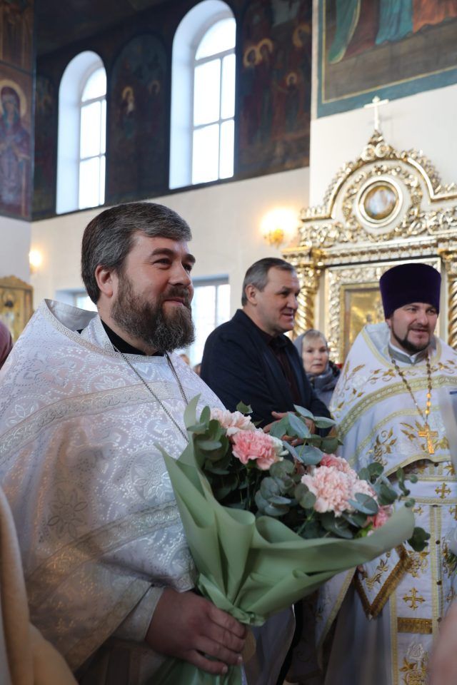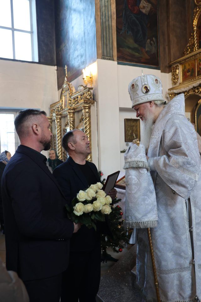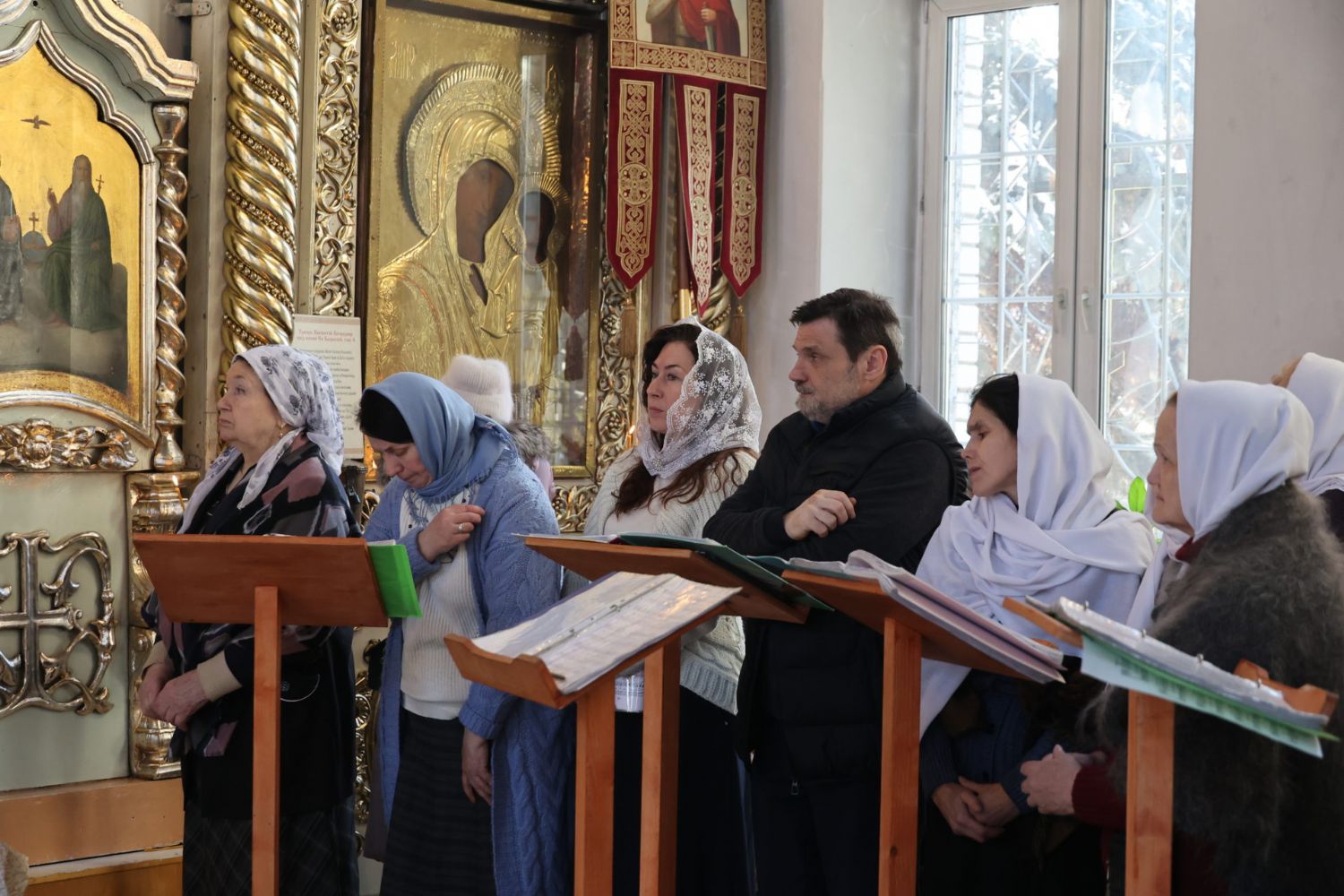 Его Преосвященству сослужило духовенство Волжской епархии, а также руководитель епархиальной комиссии по вопросам семьи, защиты материнства и детства Казанской епархии иерей Ярослав Петрущенков и клирик Тольяттинской епархии иерей Иоанн Белинский. Песнопения исполняли два хора: архиерейский (регент Любовь Михеева) и народный под управлением Евгения Чигарова.