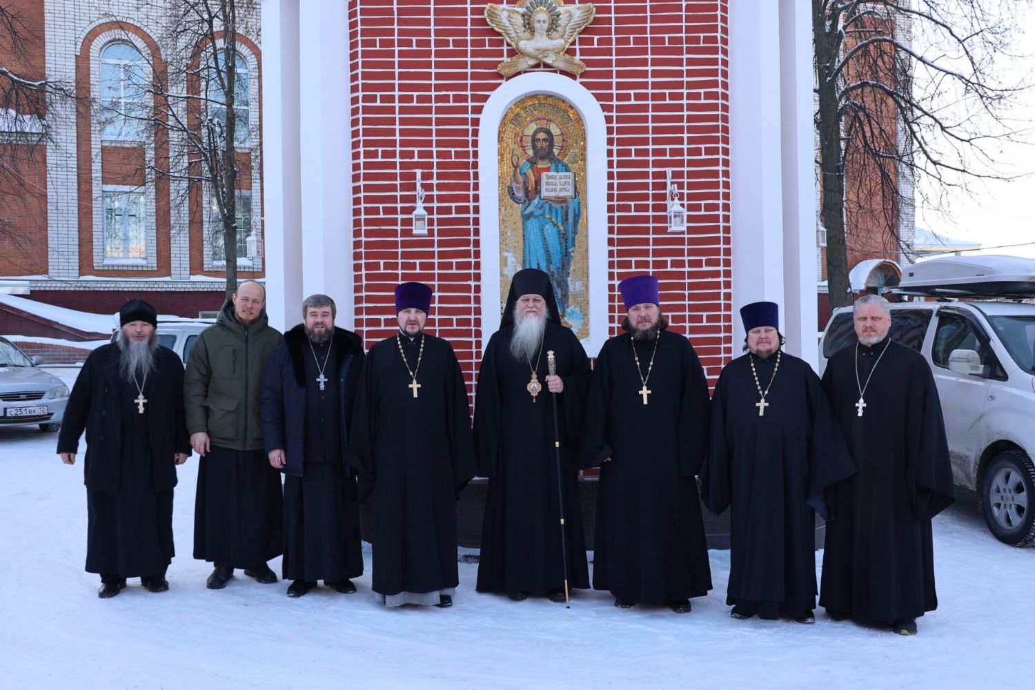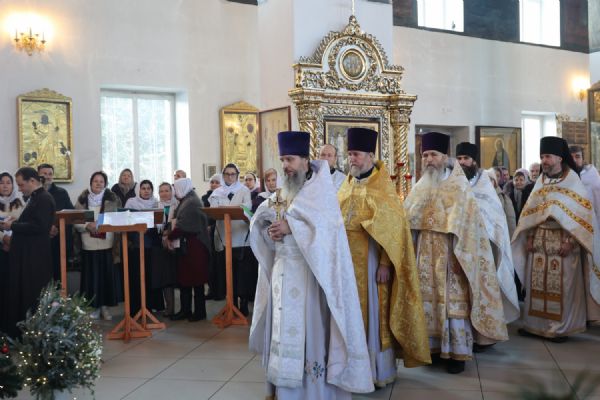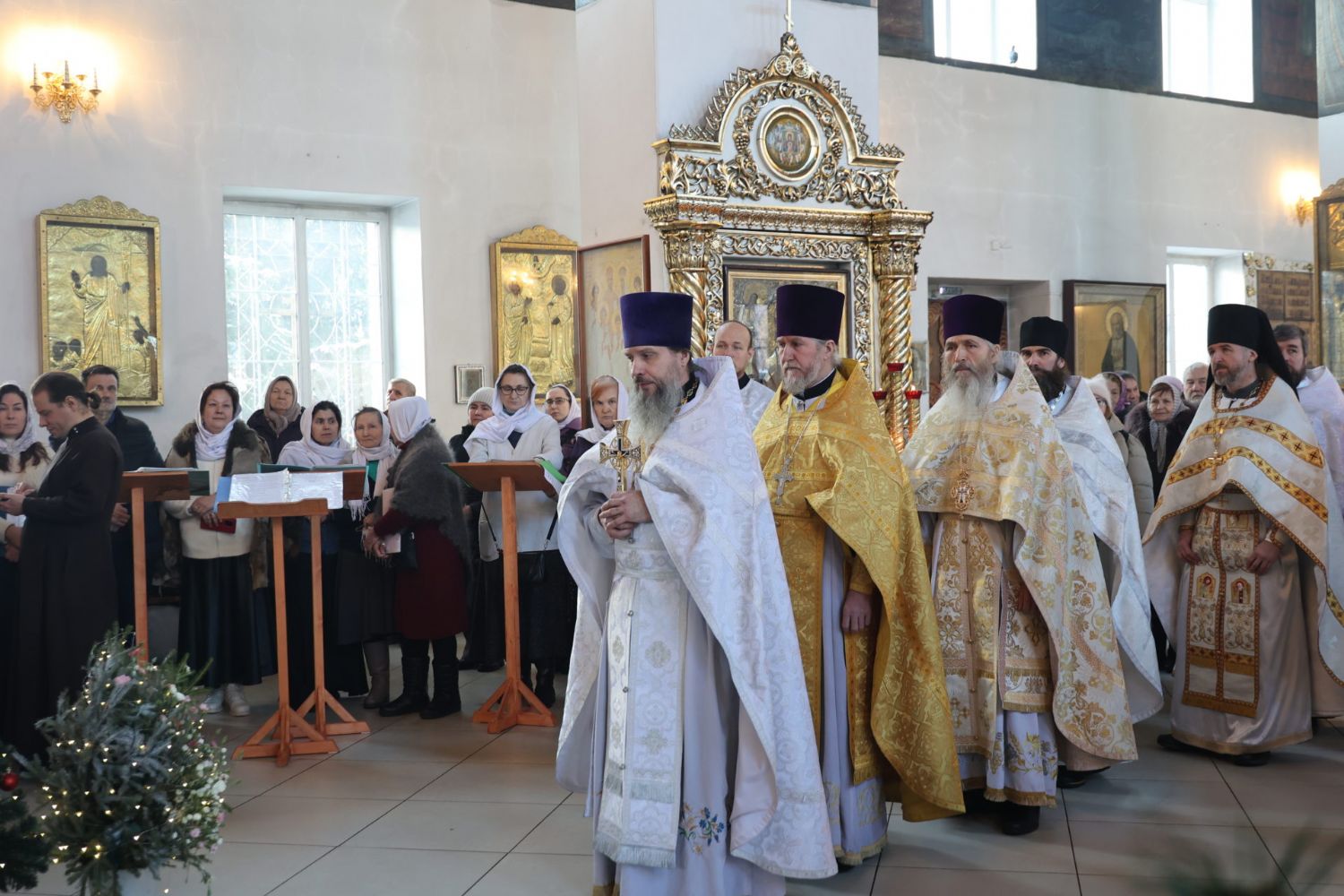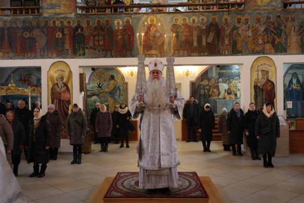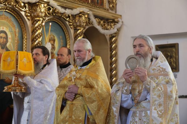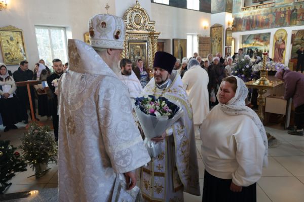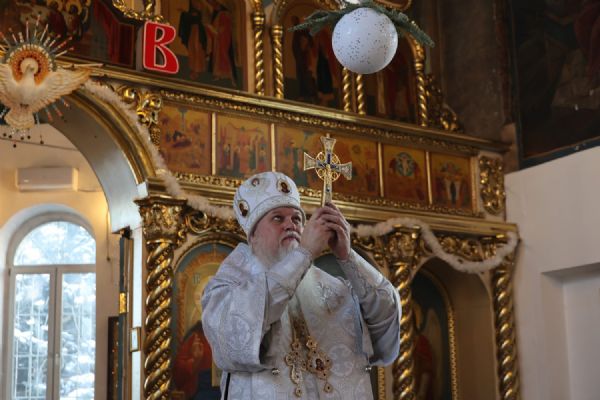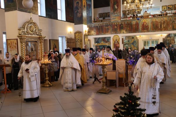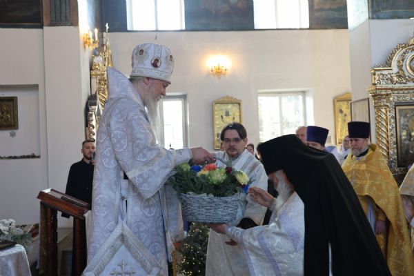 По окончании Литургии духовенством было совершено славление перед иконой праздника Богоявления и иконой святителя Феофана Затворника, затем епископ Феофан обратился к верующим с архипастырским словом, рассказав о житии, трудах и аскетических подвигах празднуемого святого – святителя Феофана, затворника Вышенского. Он жил в 19-м столетии, в разные годы управлял Тамбовской и Владимирской епархиями, но потом подал в Священный Синод прошение почислить его на покой в Вышенскую пустынь. И там воспринял на себя высокий подвиг уединения в затворе.