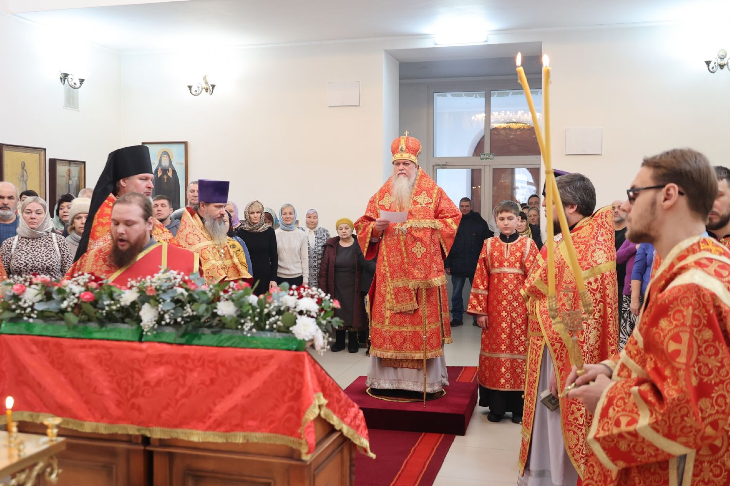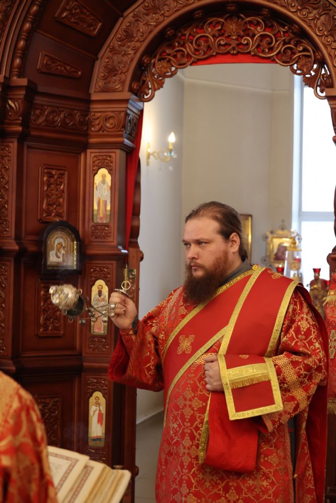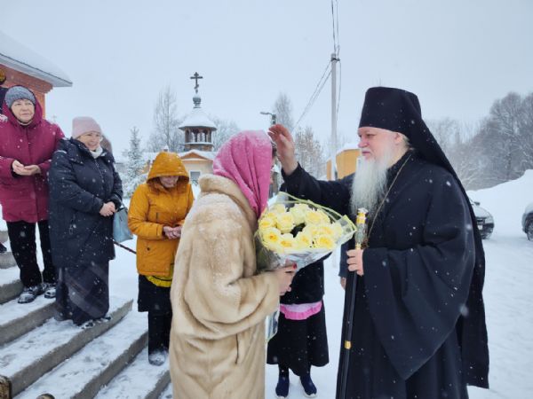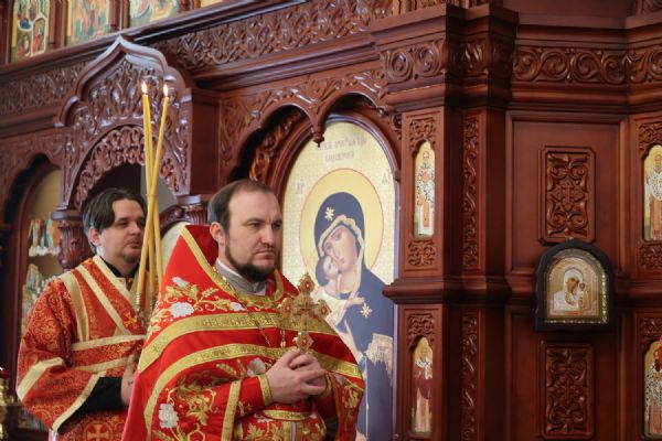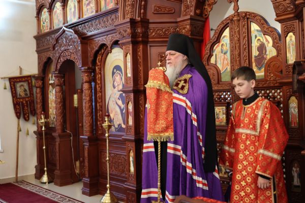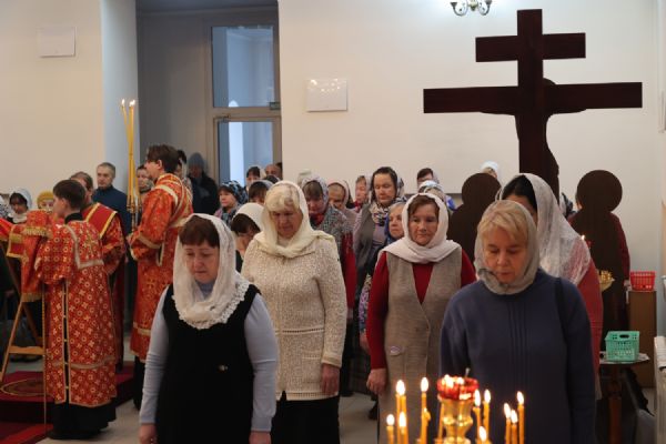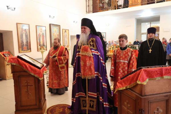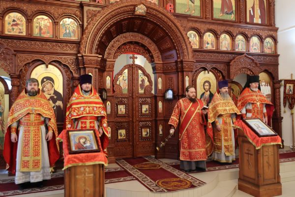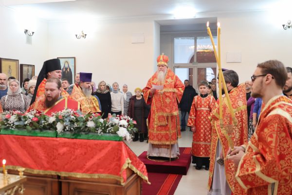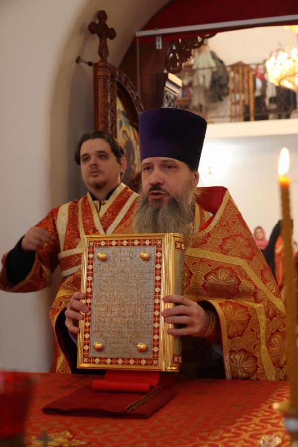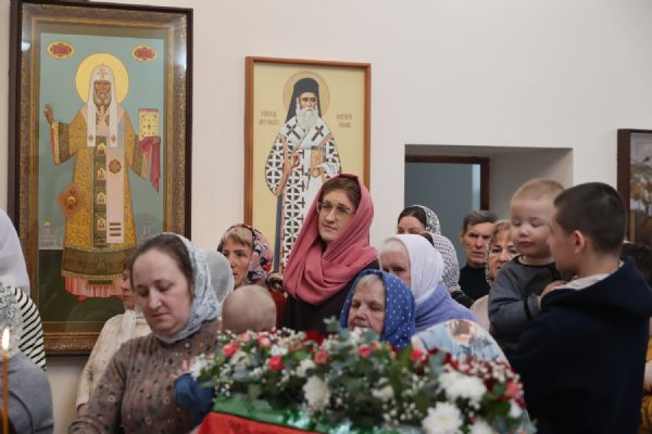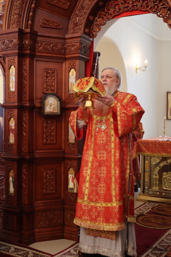 По заамвонной молитве было совершено славление перед иконой праздника. По окончании Литургии епископ Феофан совершил заупокойную литию. В завершение владыка обратился к прихожанам с архипастырским словом: