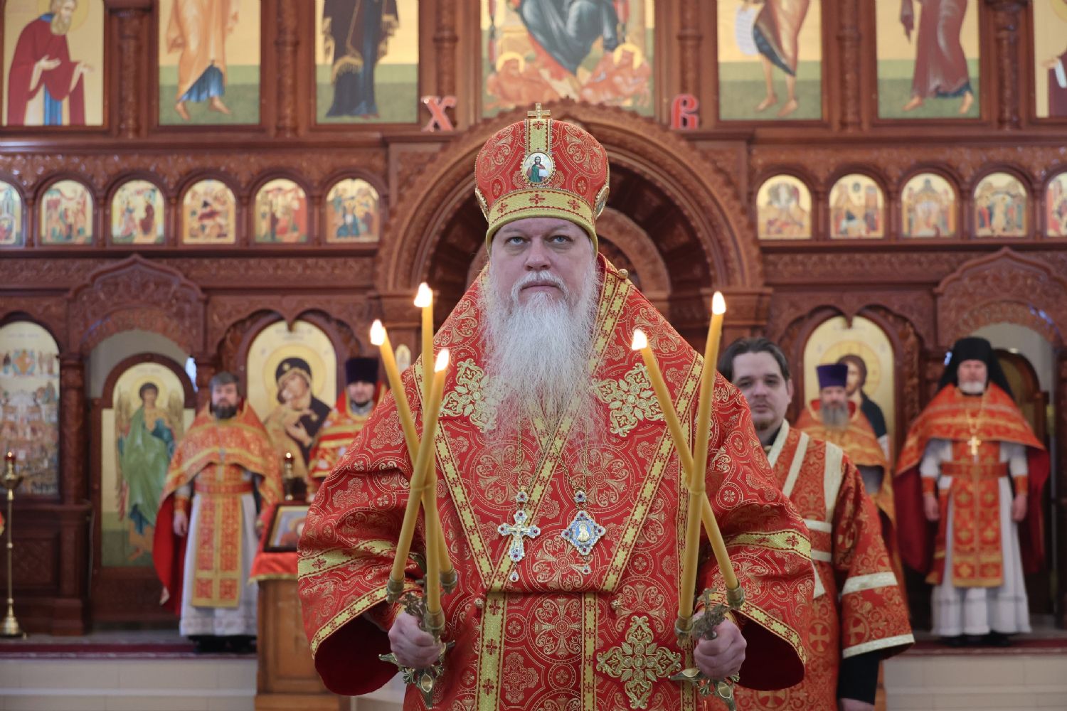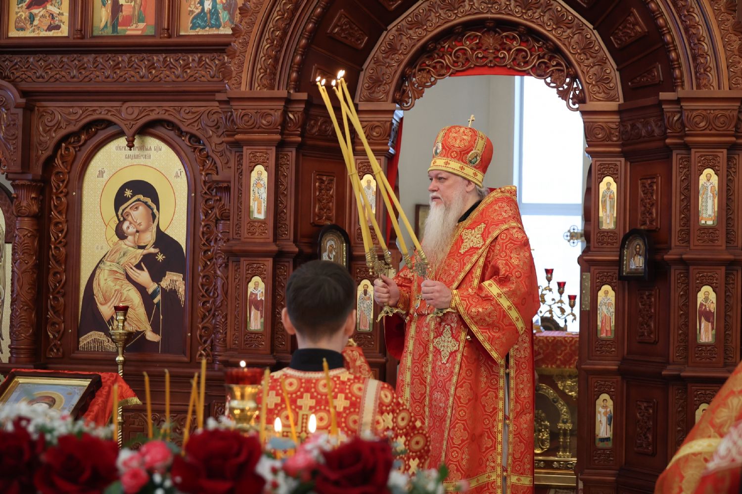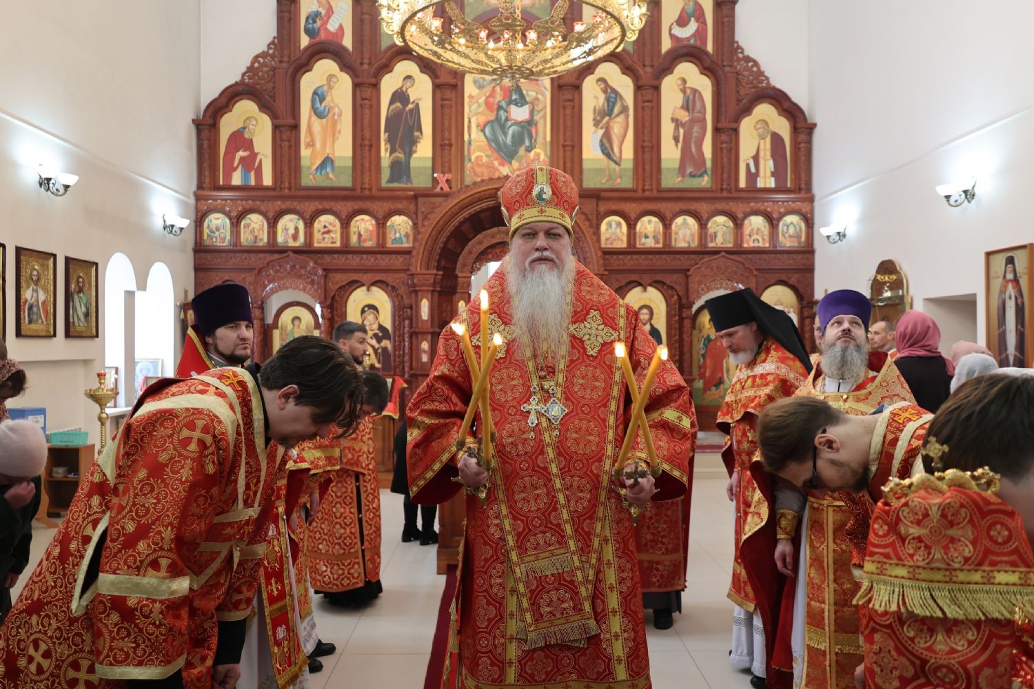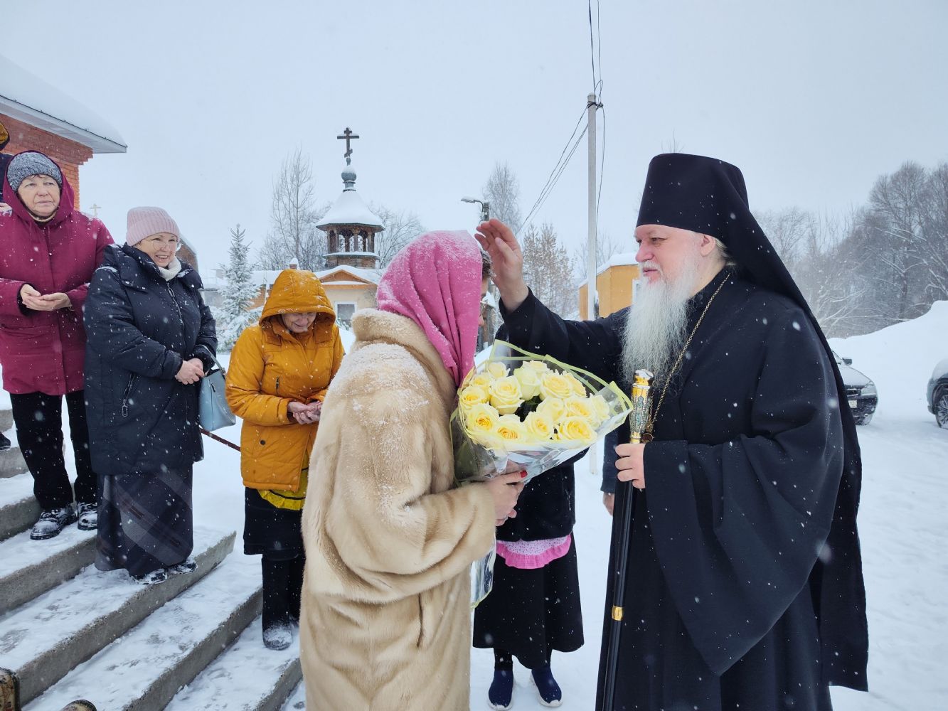 По заамвонной молитве было совершено славление перед иконой праздника. По окончании Литургии епископ Феофан совершил заупокойную литию. В завершение владыка обратился к прихожанам с архипастырским словом: