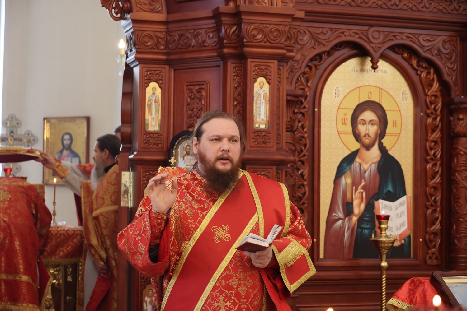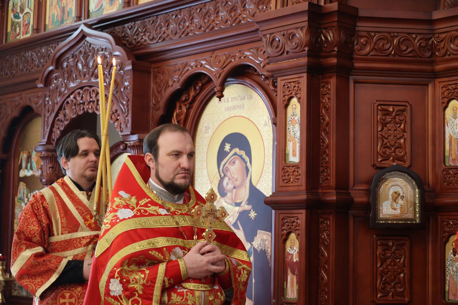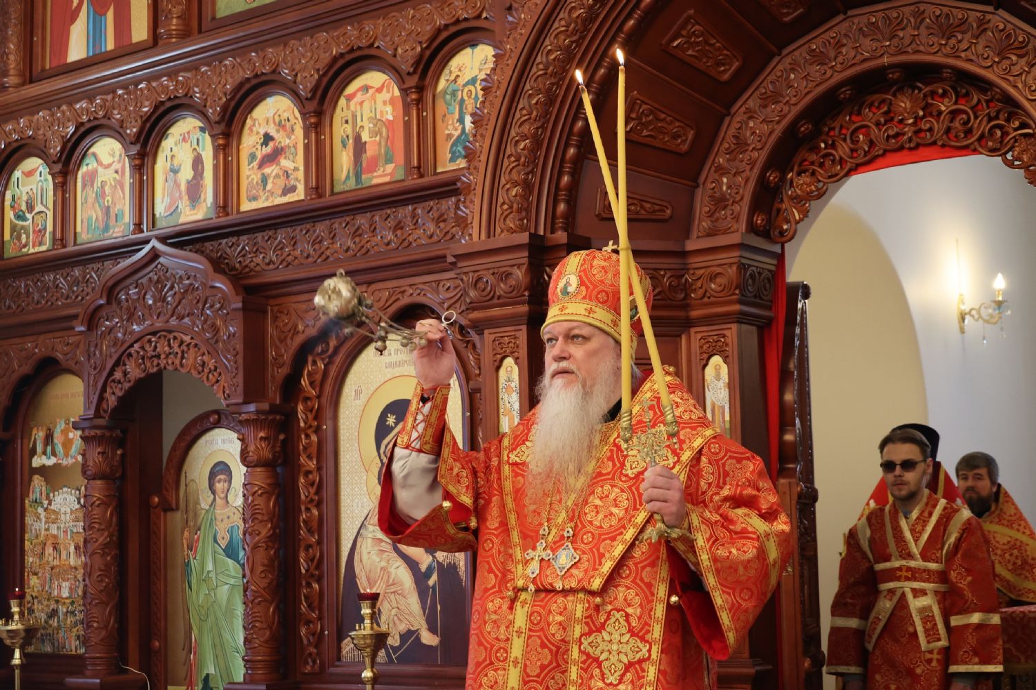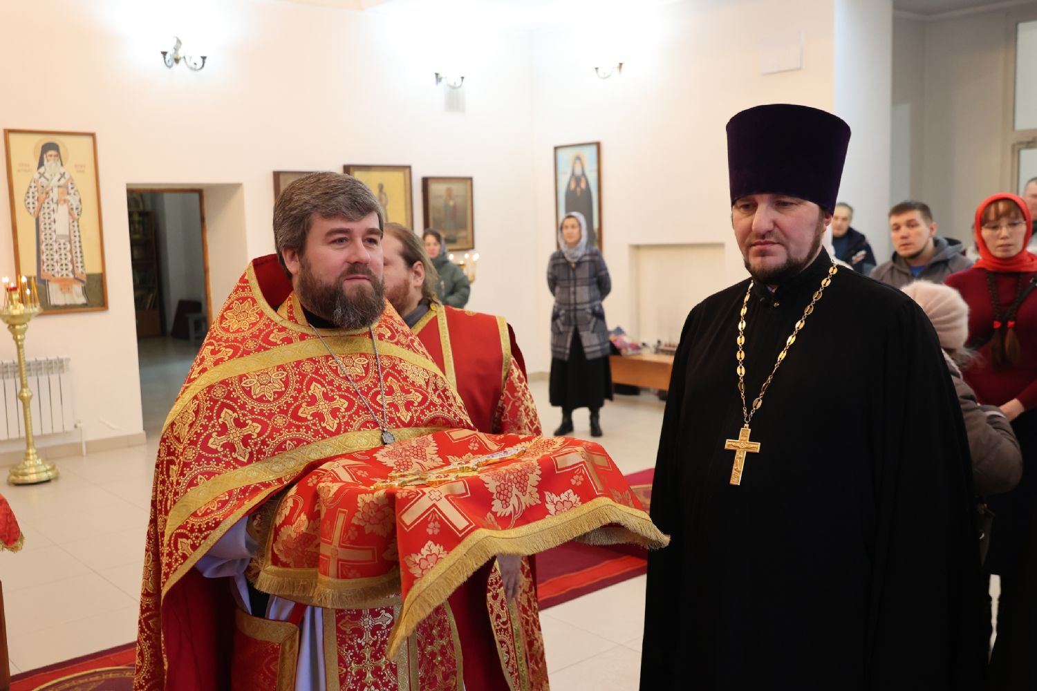 По заамвонной молитве было совершено славление перед иконой праздника. По окончании Литургии епископ Феофан совершил заупокойную литию. В завершение владыка обратился к прихожанам с архипастырским словом: