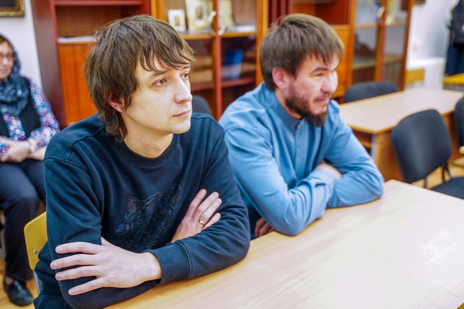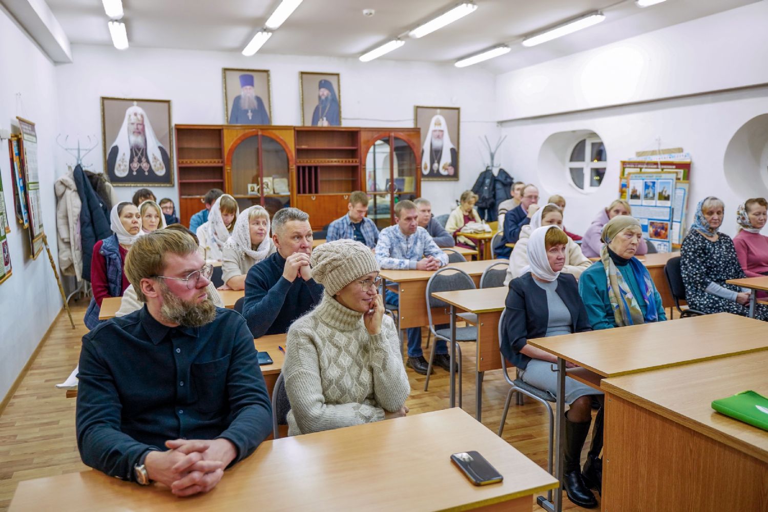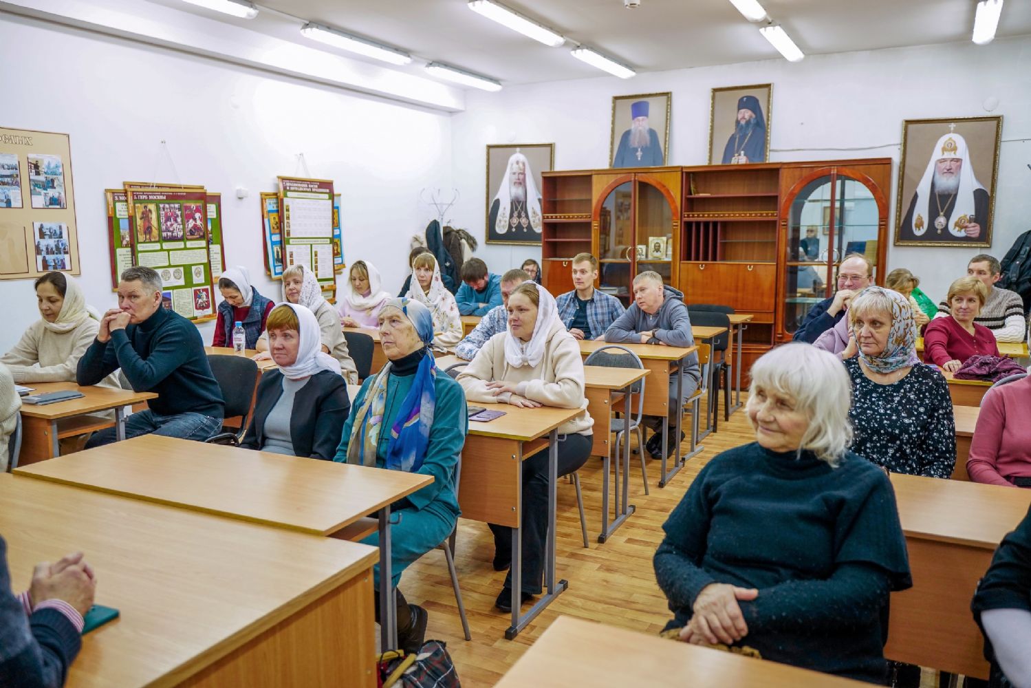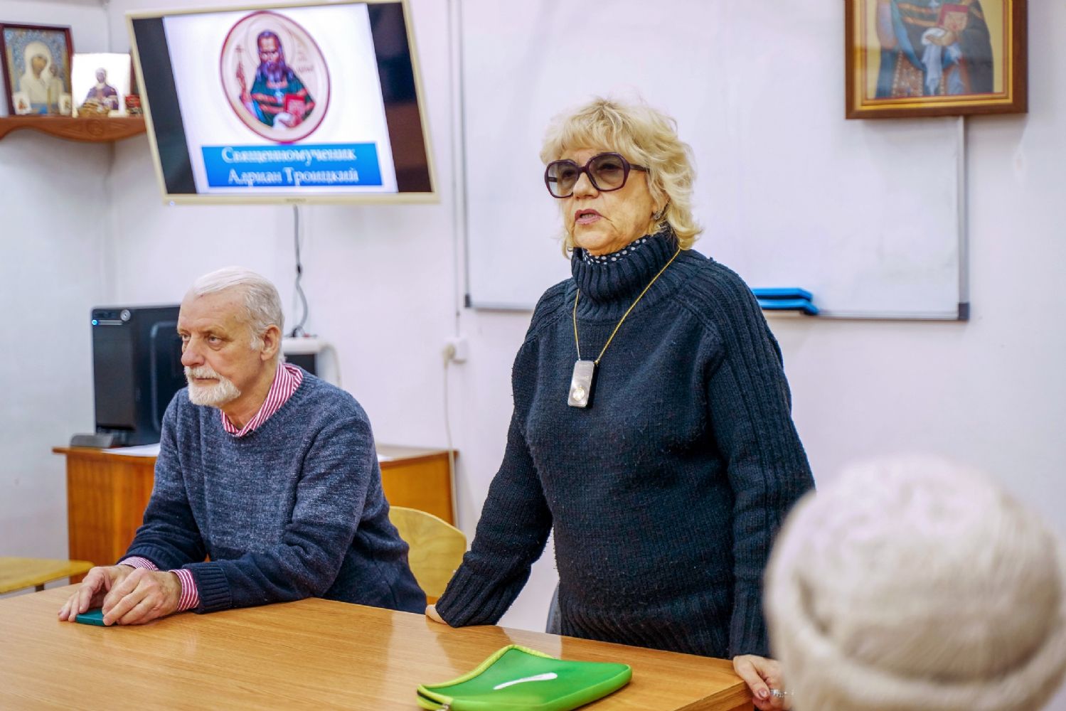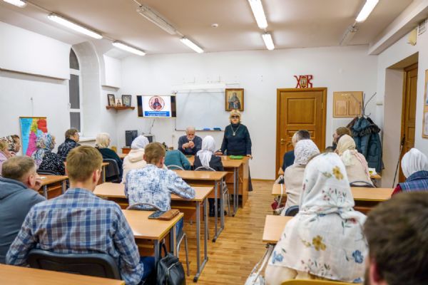 Далее курсанты прошли в учебный класс, где второкурсники представили презентацию о священномученике Адриане Троицком – о жизненном подвиге нашего святого земляка, его церковном служении, преподавательских трудах, верности Господу.