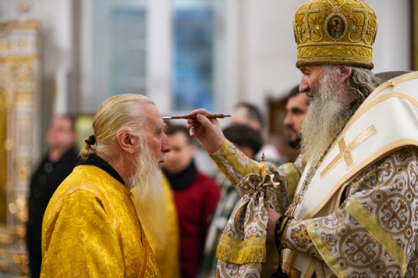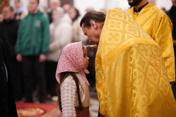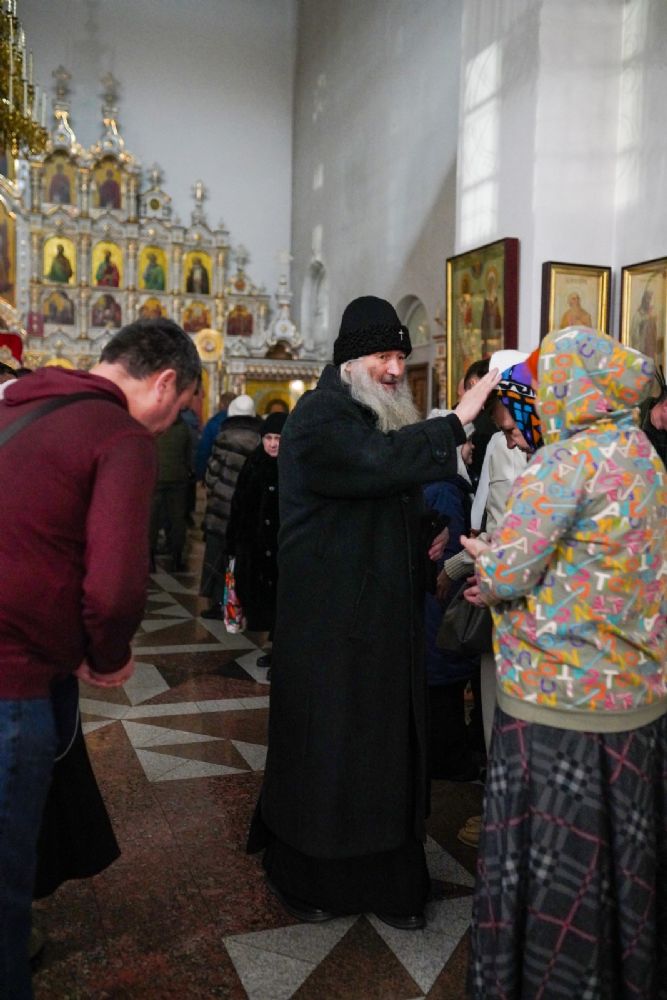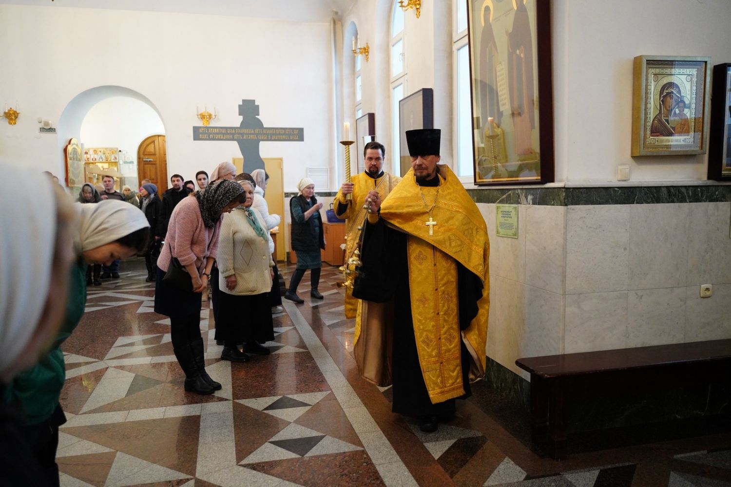 На утрене звучали стихиры сыропустной Недели и песнопения из Постной триоди «На реках Вавилонских...», «Покаяния отверзи ми двери, Жизнодавче...».