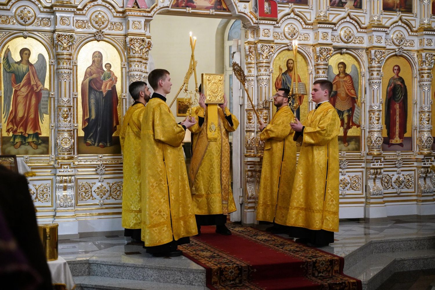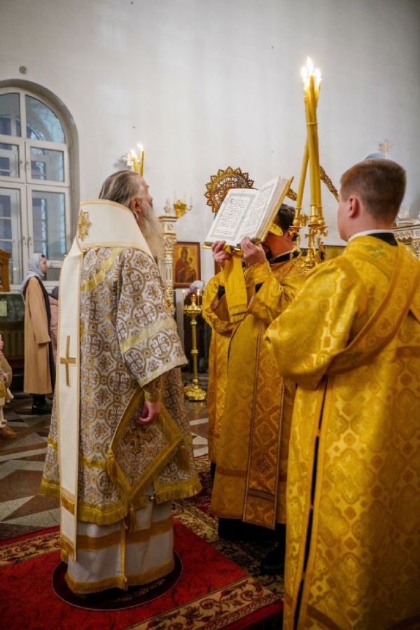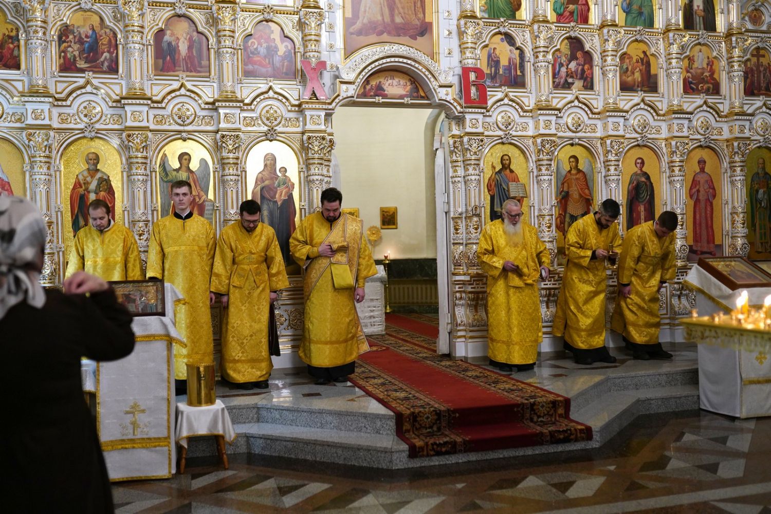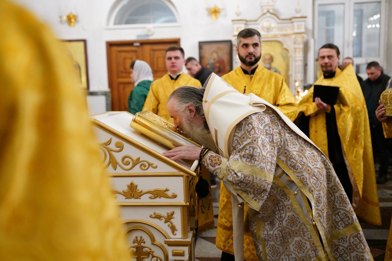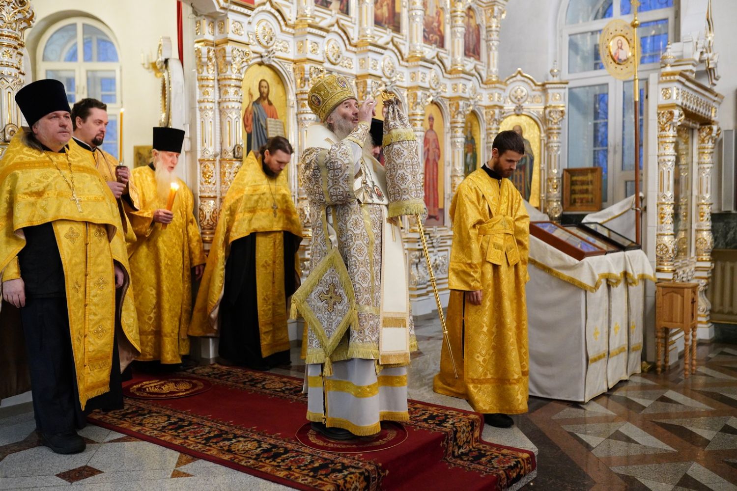 Его Высокопреосвященству сослужили настоятель собора иерей Андрей Кочаков, клирики собора иерей Леонид Вылекжанин, иерей Димитрий Лукьянов и диакон Алексий Кузнецов, а также протодиакон Михаил Козловский. Песнопения исполнял хор собора под управлением Елены Поглазовой.