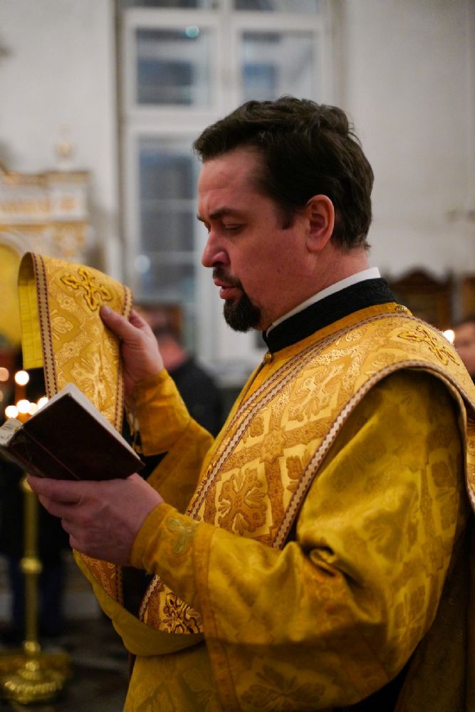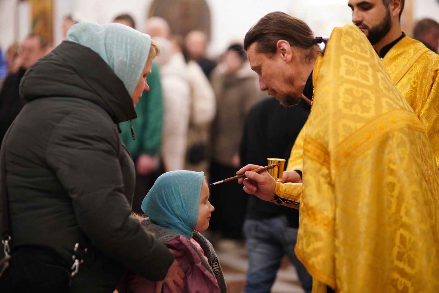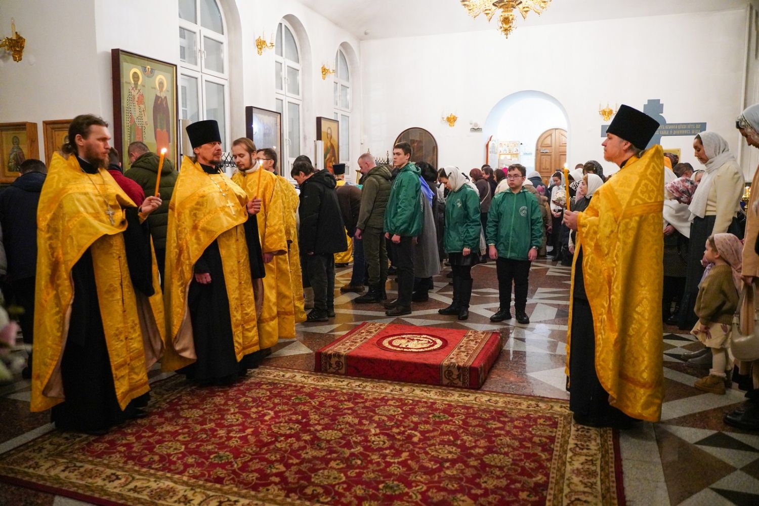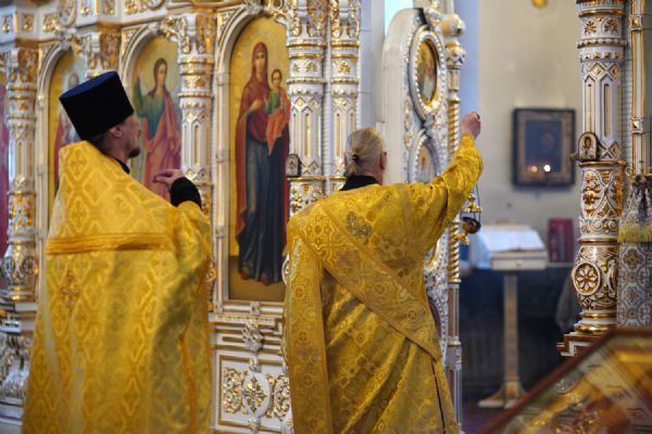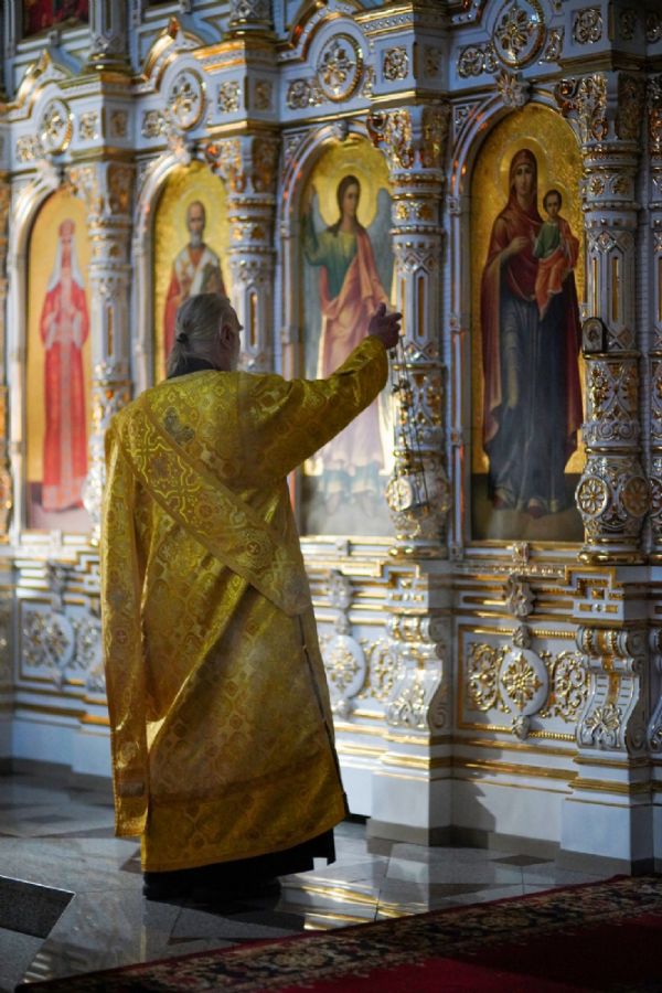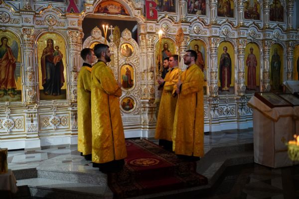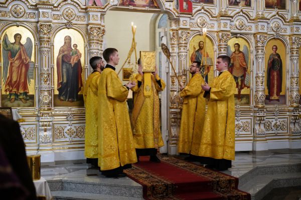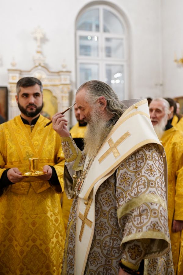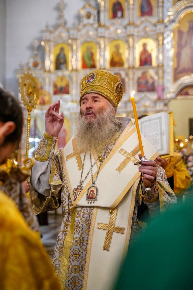 Его Высокопреосвященству сослужили настоятель собора иерей Андрей Кочаков, клирики собора иерей Леонид Вылекжанин, иерей Димитрий Лукьянов и диакон Алексий Кузнецов, а также протодиакон Михаил Козловский. Песнопения исполнял хор собора под управлением Елены Поглазовой.