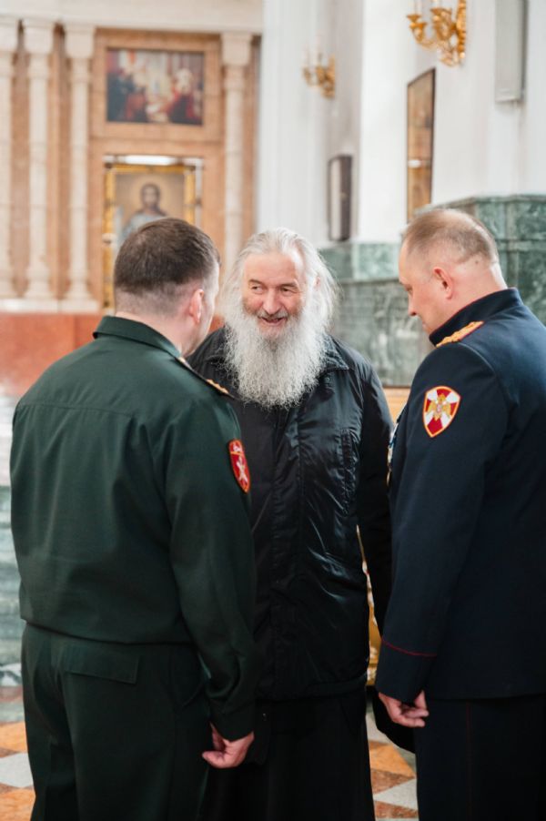 Апостол Павел говорит: «Как я могу отдать другим то, чего я не имею в своем сердце?» И каждому из вас необходимо прежде всего в своем сердце иметь мир, мужество, духовную решимость в борьбе со злом, и одновременно всегда иметь благоразумие, всегда иметь надежду на Бога, всегда молитвенно обращаться к небесному покровителю войск Росгвардии – святому князю Владимиру – и получать от него все то, что так вам потребно: мужество, стойкость и великое, необъятное сердце, способное вместить всех и вся.