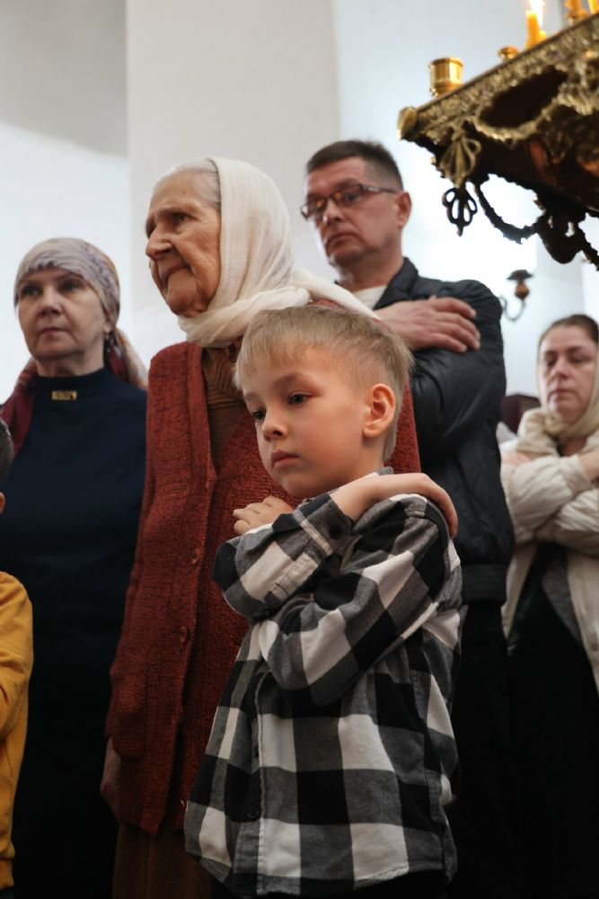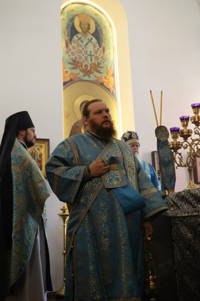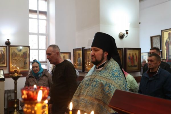 Его Преосвященству сослужили настоятель храма протоиерей Александр Михайлов, настоятель храма иконы Божией Матери «Умягчение злых сердец» д. Полевая иеромонах Амвросий (Ульянов) и клирик Никольского кафедрального собора г. Волжска диакон Иоанн Захаров. Песнопения исполнял хор под управлением Ирины Канашиной.