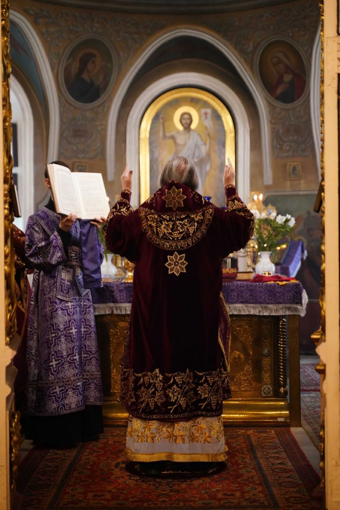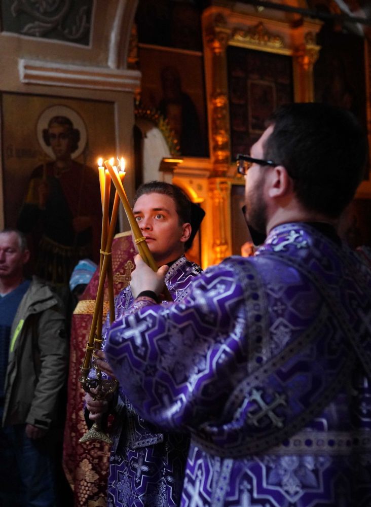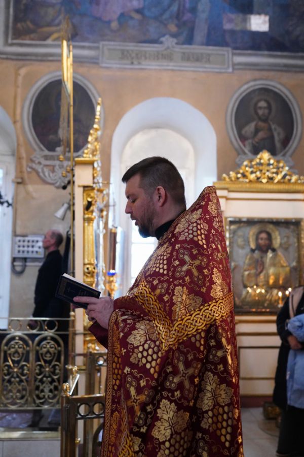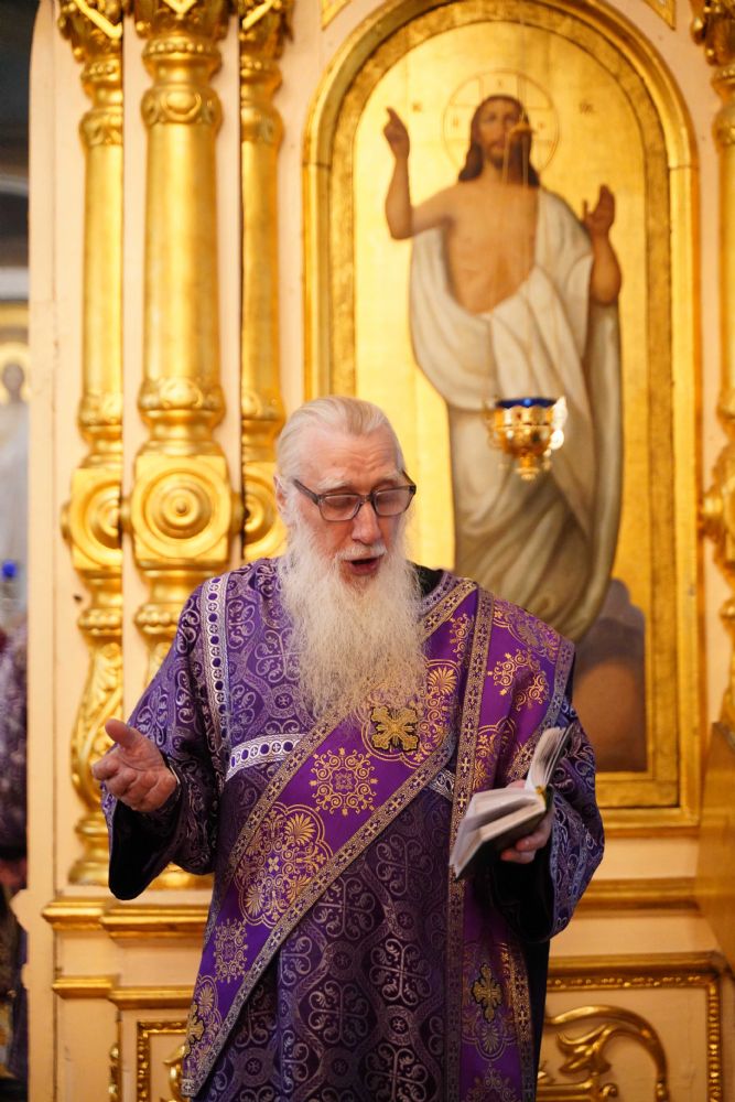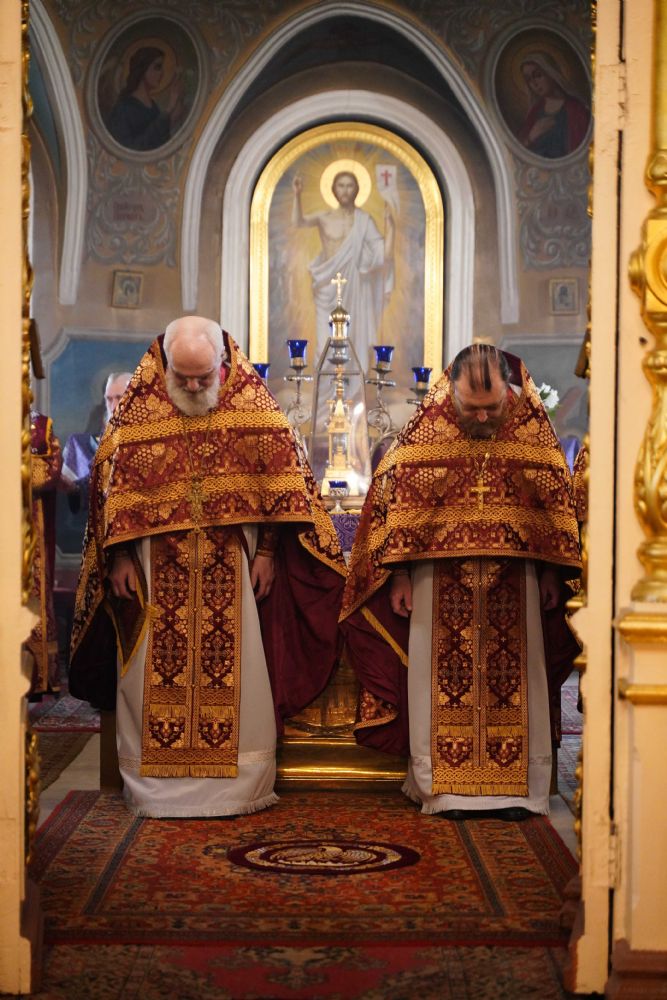 Архипастырю сослужили ключарь храма протоиерей Михаил Ильин, клирики храма протоиерей Павел Матвеев, иереи Димитрий Иванов, Сергий Асланов и Павел Дурандин, протодиакон Михаил Козловский и диакон Димитрий Смирнов. Песнопения исполнял хор храма под управлением Надежды Торощиной.
