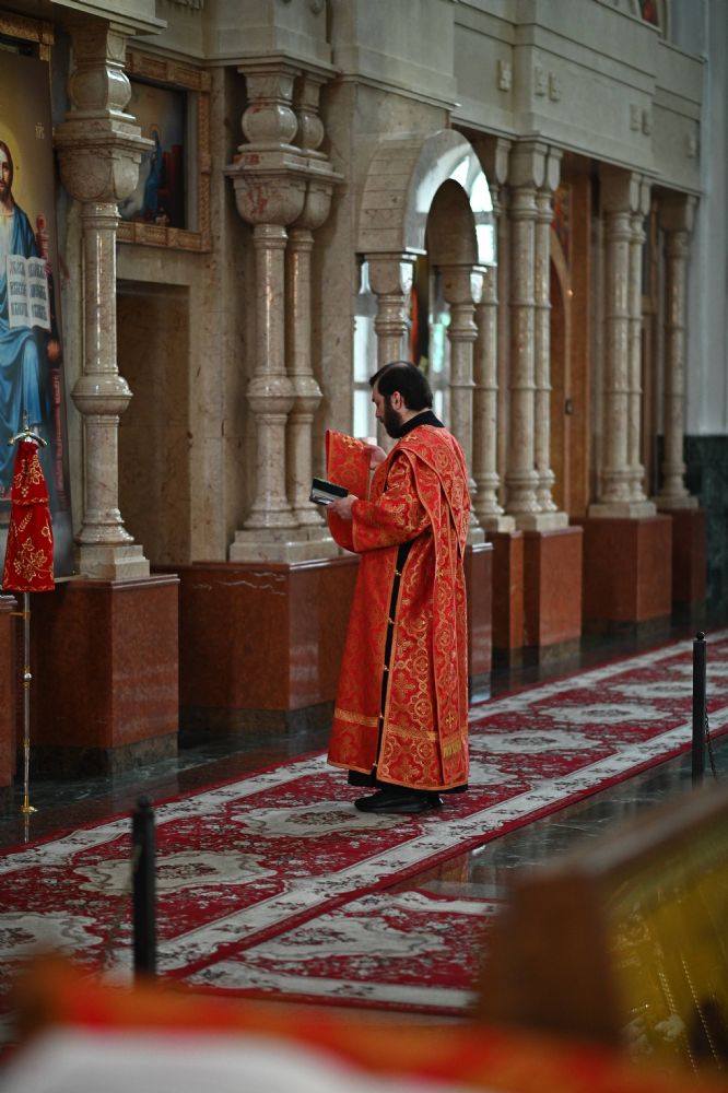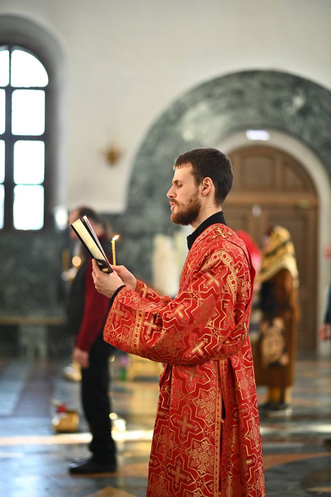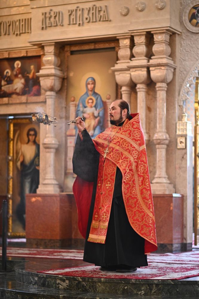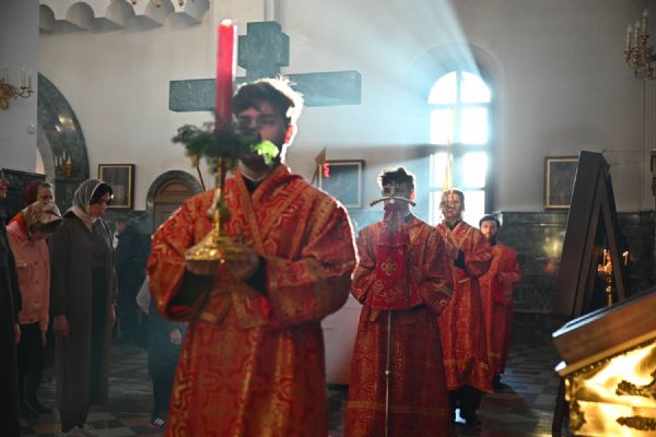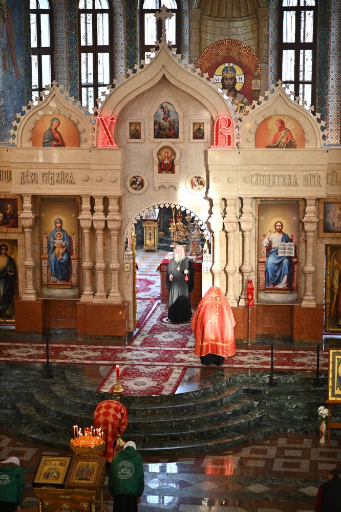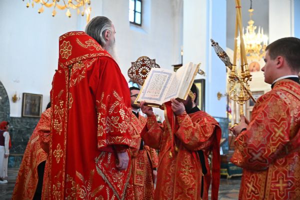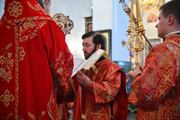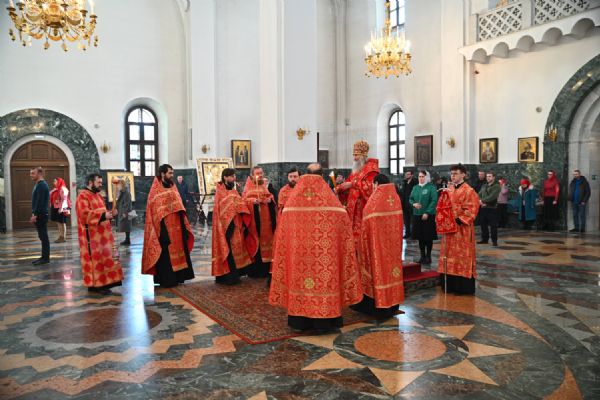 Владыке сослужили ключарь собора протоиерей Сергий Поглазов, клирики собора иереи Никифор Захаров, Евгений Самойлов, Александр Староверов, Иоанн Милютин и диакон Артемий Бобоч. Песнопения исполняли старший и младший составы архиерейского хора «Благовест» под управлением регентов Татьяны Черновой и Надежды Поздеевой.