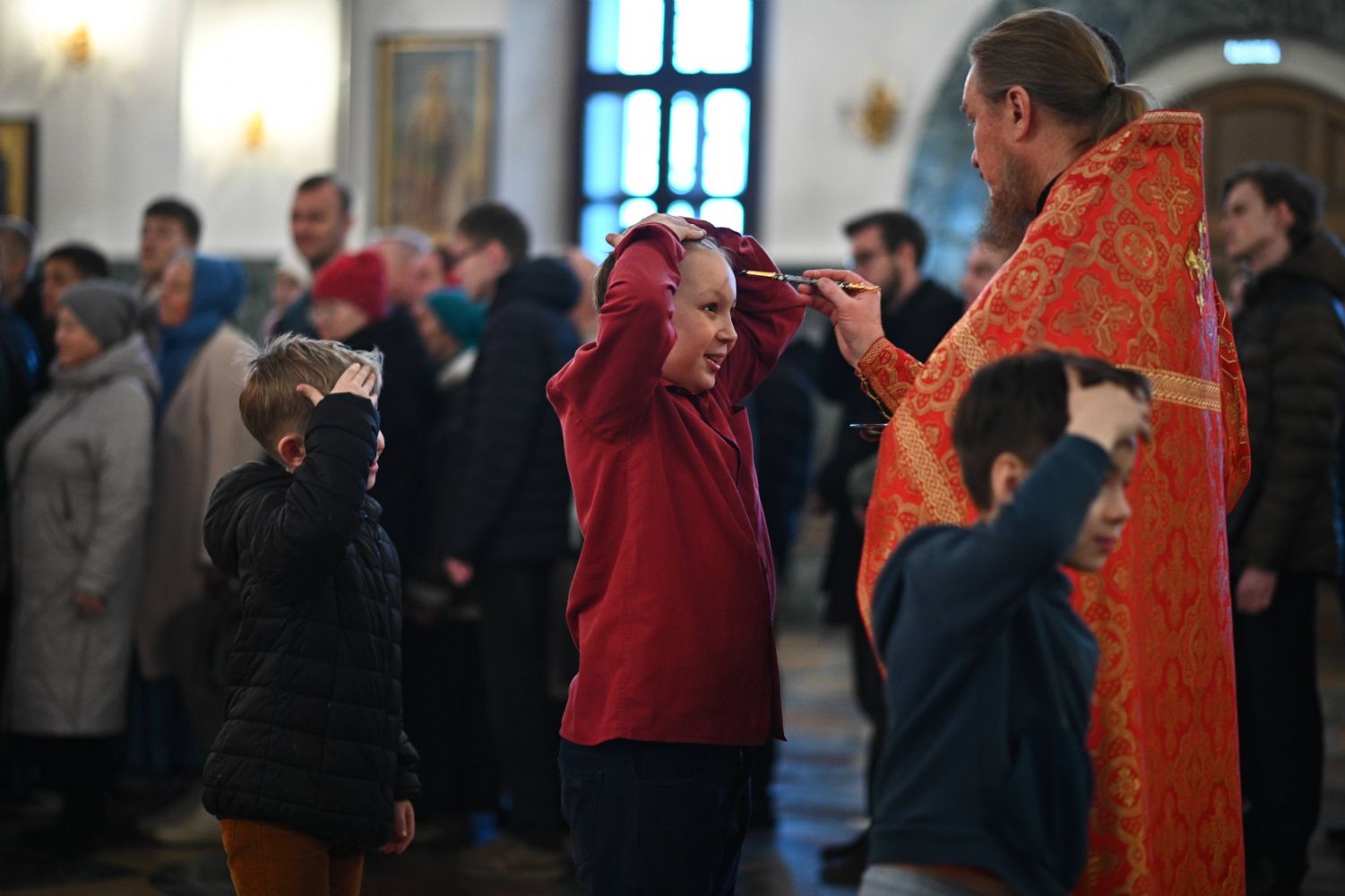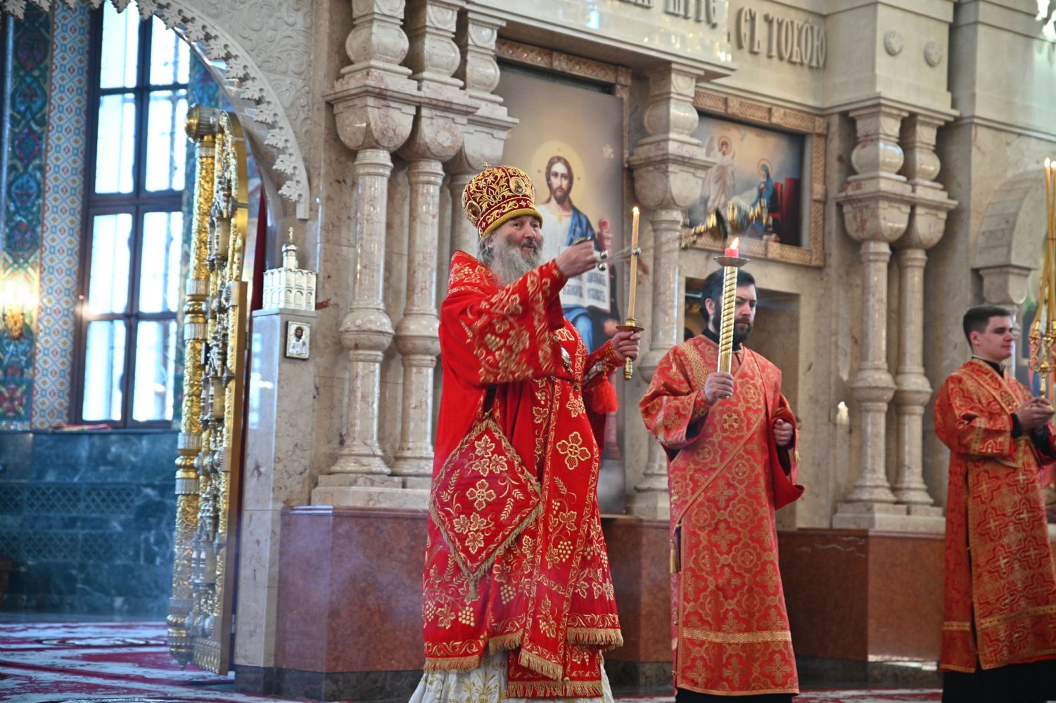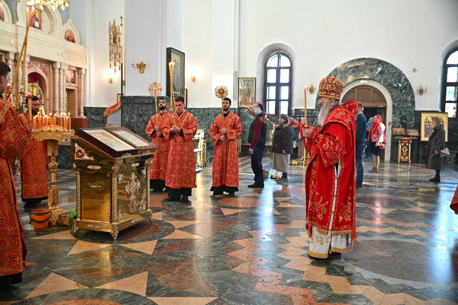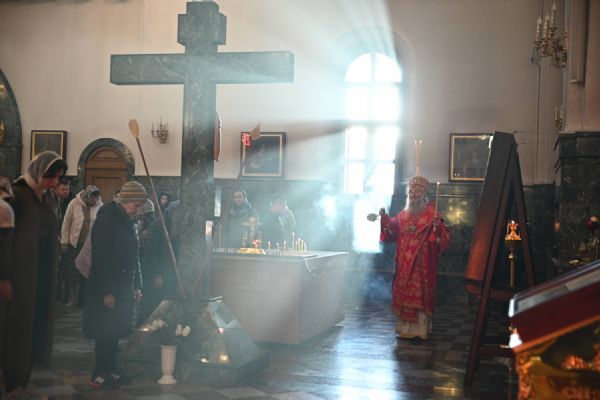 Владыке сослужили ключарь собора протоиерей Сергий Поглазов, клирики собора иереи Никифор Захаров, Евгений Самойлов, Александр Староверов, Иоанн Милютин и диакон Артемий Бобоч. Песнопения исполняли старший и младший составы архиерейского хора «Благовест» под управлением регентов Татьяны Черновой и Надежды Поздеевой.