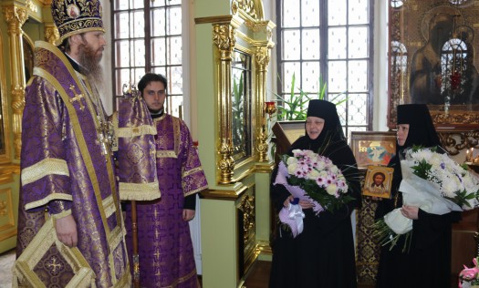 В торжественный день епископ Варнава возглавил соборное богослужение в Никольском приделе кафедрального собора Рождества Христова в Выксе. Правящему архиерею сослужили секретарь епархии протоиерей Иоанн Ляпин и благочинные округов Выксунской епархии, приехавшие поздравить архипастыря. От лица духовенства поздравительное слово произнес протоиерей Иоанн Ляпин. «В Вашем лице мы получили доброго пастыря, с которым радостно нести труды. Молим Бога, чтобы Господь укреплял Ваши духовные и телесные силы. Это не просто слова – они исходят от переполненного сердца. Вы для нас – заботливый духовный отец, с которым мы разделяем печаль о наших согрешениях, от которых Вы разрешаете нас. Это очень важно. Вы несете ответственность за всех нас, и мы будем просить Бога дать Вам необходимые силы и благодать для несения тяжелого креста архипастырского служения. А мы в этом будем вам хоть и немощными, но помощниками», – заверил отец Иоанн.