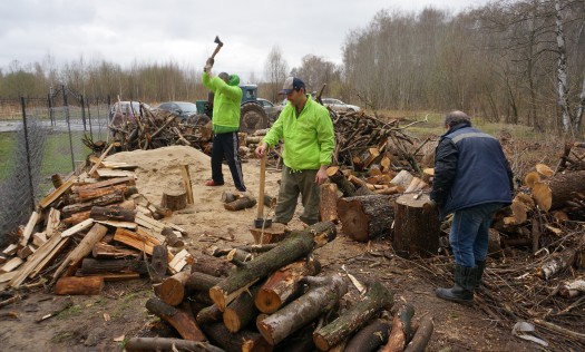 Храм и дом причта отапливается дровами. Недавно на приход была привезена очередная партия древесины. Мужчинам нужно было помочь колоть дрова и складировать их в поленницы. Девушки в это время убирались в самом храме: мыли полы, наводили порядок к Пасхе.