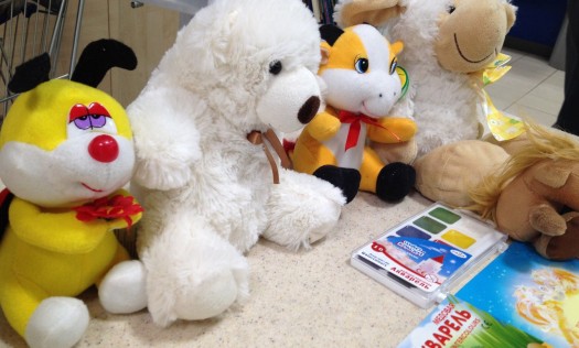 Ребятам удалось собрать множество подарков: краски, фломастеры, цветные карандаши и мягкие игрушки.