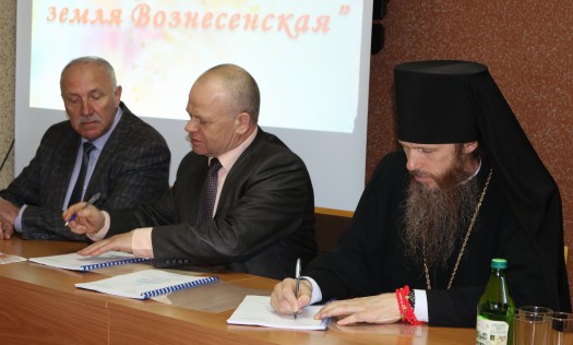 По окончании богослужения в здании районной администрации состоялось подписание комплексной просветительской программы «Благословенная земля Вознесенская», рассчитанной на 2016–2020 годы. Ее цель – приобщение жителей к духовно-нравственному, культурно-историческому и гражданско-патриотическому наследию России.
