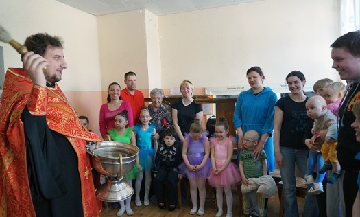 В столовой лечебного учреждения собрались маленькие пациенты, их родители, младший дежурный персонал. Отец Андрей обратился ко всем собравшимся с пасхальным приветствием и рассказал о празднике. После молебна священник окропил всех святой водой и пожелал детям скорейшего выздоровления.