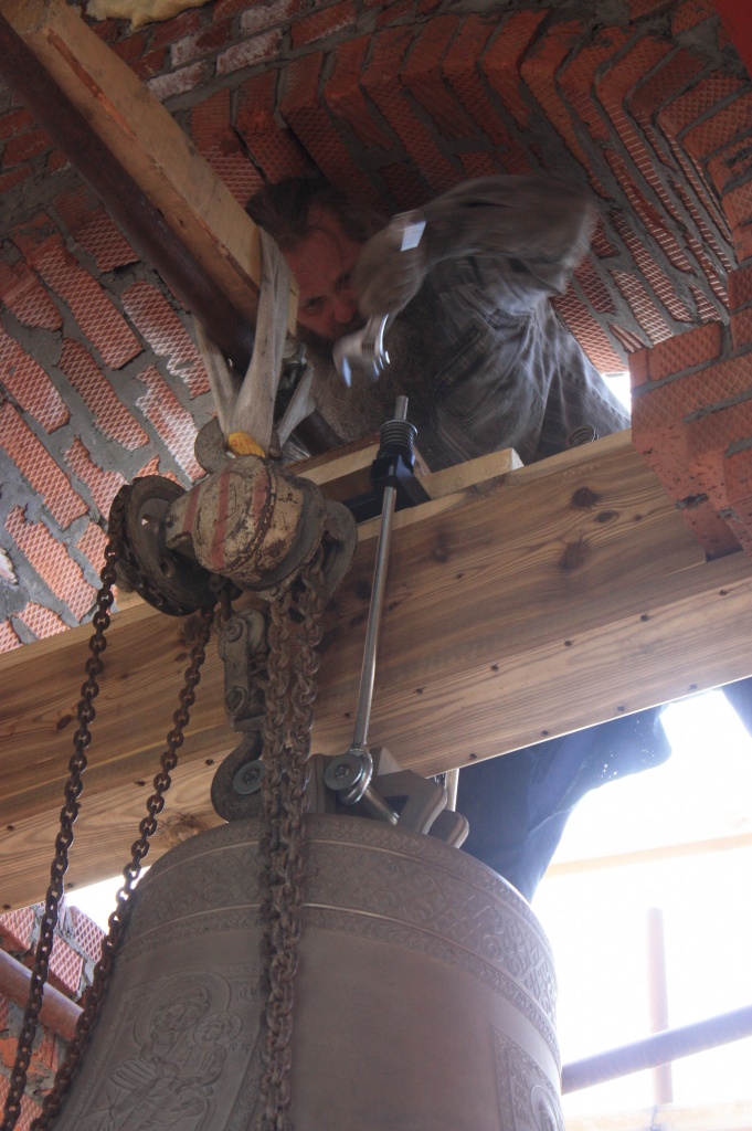 в течение дня удалось поднять только два колокола – весом в 700 и 140 кг. параллельно проходили съемки материалов для многосерийного фильма о сибирских колоколах и звонах. во вторник, 7 июня, работы были продолжены, специалисты осуществили подвес остальных 7 колоколов. в ближайшее время будет произведена балансировка всего подбора и оборудование звонарского помоста, после чего жители каргата смогут услышать колокольные звоны на родной земле. | ||
