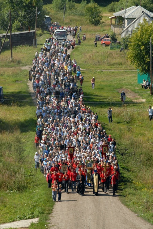 в этом году в крестном ходе приняло участие приблизительно 1000 человек, из них 600 участников приехали из новосибирска. от собора святого александра невского все немощные и нуждающиеся доехали до места сбора на девяти автобусах, заказанных специально для этой цели новосибирской епархией, остальные прибыли на электричке и на личном транспорте. рядом с новосибирцами шествовали паломники из кемеровской, томской, алтайской епархий. погода порадовала, молитвенное шествие проходило чинно, неспешно. уставшие могли передохнуть в автобусе, сопровождавшем колонну, и опять продолжить путь. турнаевские прихожане встретили радушно. на средства епархии был приготовлен ужин, предложили чай, который оказался очень кстати после длительной ходьбы на жаре. вечером в турнаевском храме во имя святого преподобного серафима саровского отслужили всенощное бдение, а наутро совершалась божественная литургия. несмотря на то, что основная масса народа разъехалась, на богослужении храм был полон, люди молились и на улице, 265 человек приняли святое причастие. после литургии состоялся праздничный молебен с крестным ходом вокруг храма во главе с его высокопреосвященством архиепископом тихоном. после богослужения был дан замечательный праздничный концерт силами прихожан. образование и православие / фоторепортаж андрея шапрана и егора науменко http://ansobor.ru/news.php?news_id=2016 | ||