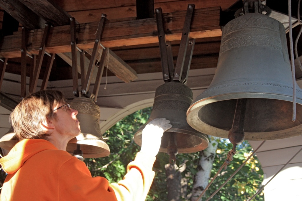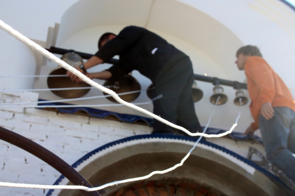 в новосибирск приехала группа из пяти звонарей москвы и подмосковья. в понедельник встреча началась экскурсией по школе и музею, которую провел выпускник новосибирской школы звонарей андрей ярыгин. 7 сентября был отслужен молебен на начало благого дела, игумен владимир (соколов) благословил звонарей продолжать обмен опытом, начавшийся еще в июле на краткосрочных курсах, куда приезжала завуч школы звонарей при заводе «литэкс» екатерина головизнина. после молебна звонари отправились в исправительную колонию № 18, где в храме в честь иконы божией матери «владимирская» начали работы по балансировке колокольного подбора. образование и православие / алексей талашкин | ||