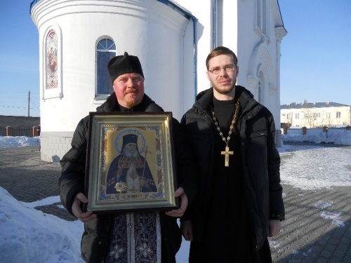Это уже второй дружественный визит батюшки в Каинскую епархию. Святителя встречал настоятель прихода иерей Максим Сапронов.