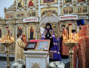 По окончании литургии Владыка напомнил, что третье воскресение по Пасхе Православная Церковь посвящает прославлению святых жен-мироносиц и тепло поздравил женскую половину храма с этим поистине православным женским днём.