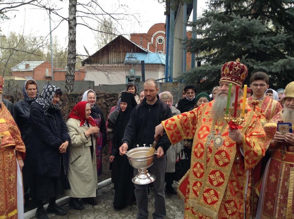 14 мая, на Радоницу, в день особого поминовения усопших Митрополит Новосибирский и Бердский Тихон совершил Божественную Литургию в храме во имя св. мч. Евгения на Заельцовском кладбище.