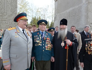 По окончании панихиды Владыка поздравил новосибирцев с праздником Победы. "В Евангелии сказано: нет больше той любви, как если кто положит душу свою за други своя. Советские солдаты совершили именно такой подвиг - они жизни свои положили на алтарь Победы, - обратился к собравшимся Митрополит Тихон. - Памятник - это особое, святое место, связанное с судьбой каждого человека. Со слезами на глазах мы приходим к мемориалам, каждый вспоминает своих родственников, в каждой семье живет память об этой страшной и великой войне. Фашисты расчитывали, что народ разъединен, но все мужественно встали на защиту Отчизны. Желаю здоровья ветеранам, чтобы они рассказали нам и нашим детям о той великой битве, мы хотим сохранить эту память, чтобы на ней воспитывались еще многие поколения. Многие погибшие воины были православными людьми, поэтому мы совершаем панихиды и молимся о них в домашней молитве, чтобы они обрели вечную жизнь в Царствии Небесном".