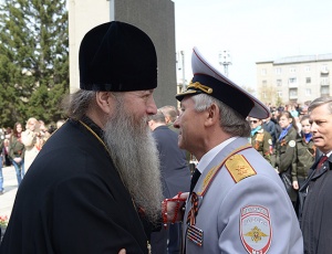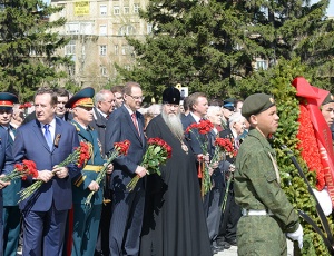 Также Митрополит Тихон принял участие в торжественном митинге, посвященном 68-й годовщине Великой Победы, который состоялся на Монументе славы. Владыка поздравил ветеранов и новосибирцев с праздником и возложил цветы к мемориалу славы и к вечному огню. Также в митинге приняли участие полномочный представитель Президента РФ в Сибирском федеральном округе В.А. Толоконский, губернатор Новосибирской области В.А. Юрченко, председатель Законодательного собрания Новосибирской области И.Г.Мороз и другие почетные гости.
