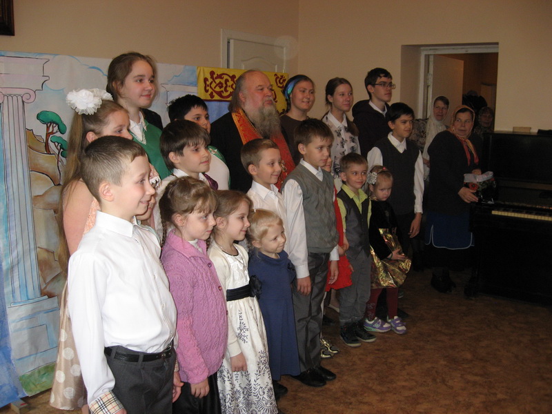 – Терпение и труд, это везде, Виктор. Трудность в том, что каждая сценка исполняется разной возрастной группой, нужно учитывать особенности детей, их восприятие события. Объясни ребёнку в 5-6 лет, что ему это нужно. Конечно, помогают родители и коллега Мария Павловна. Что мы делаем на спектаклях? Закрепляем в игровой форме знания, полученные в воскресной школе, получаем радость совместного творчества.