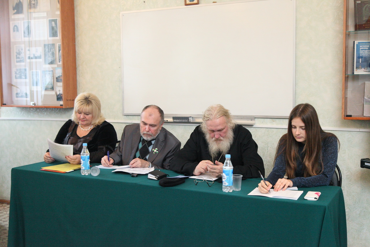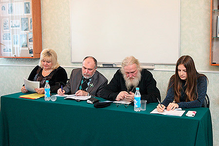 В президиуме — академик И.И.Косинова, игумен Киприан, проф. Б.Г.Бобылев