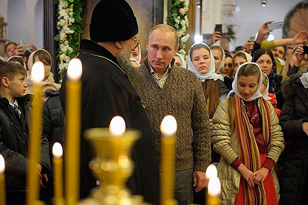 В.В. Путин беседует с председателем ОПУ протоиереем Геннадием Заридзе. Фото пресс-службы Президента России