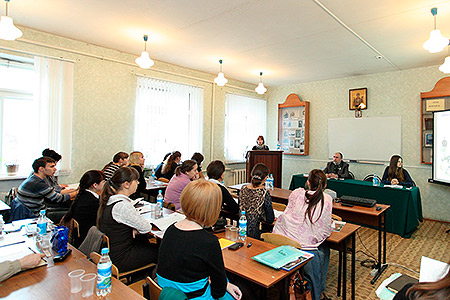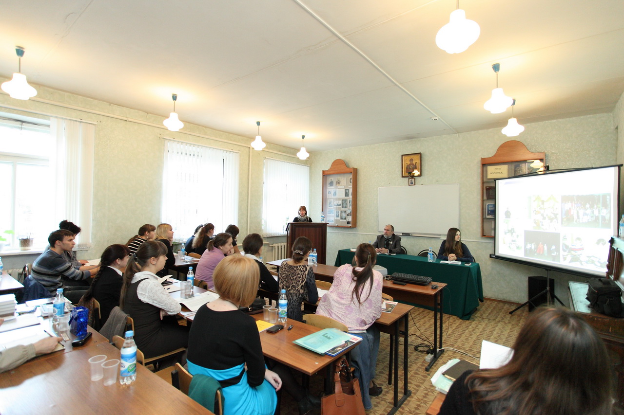 Заседание секции молодых ученых в Воронежской духовной семинарии. Выступает О. Никитенко