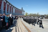 Всегда с особым чувством присутствую на параде кадетов, отслужив здесь, в храме-памятнике на Поклонной горе, Божественную литургию в день памяти святого великомученика Георгия Победоносца. Когда я смотрю на ваши лица, на вашу выправку, я чувствую, что в вас отображается великая героическая традиция предыдущих поколений, всех тех, кто жизнь свою отдавал за Родину, кто никогда не боялся врага, кто мужественно шел защищать Отечество, кто трудился в мирное время, совершая чудеса мужества и силы духа. И покуда будут в каждом последующем поколении отражаться героизм и сила поколений предыдущих, у нас будет поступательное развитие, мы будем идти в будущее с высоко поднятой головой, с уверенностью в новые победы.