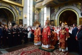 После сугубой ектении Предстоятель Русской Православной Церкви вознес молитву о мире на Украине.