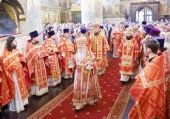 После сугубой ектении владыка Ювеналий вознес молитву о мире на Украине и молитву о упокоении приснопамятного митрополита Ленинградского и Новгородского Никодима (Ротова).