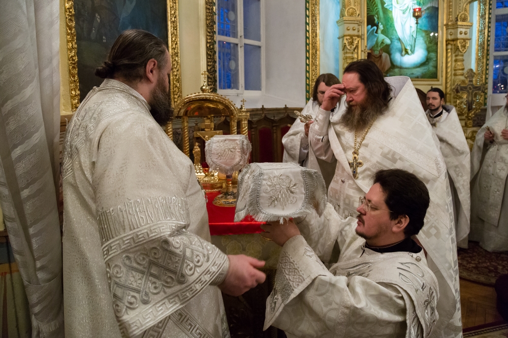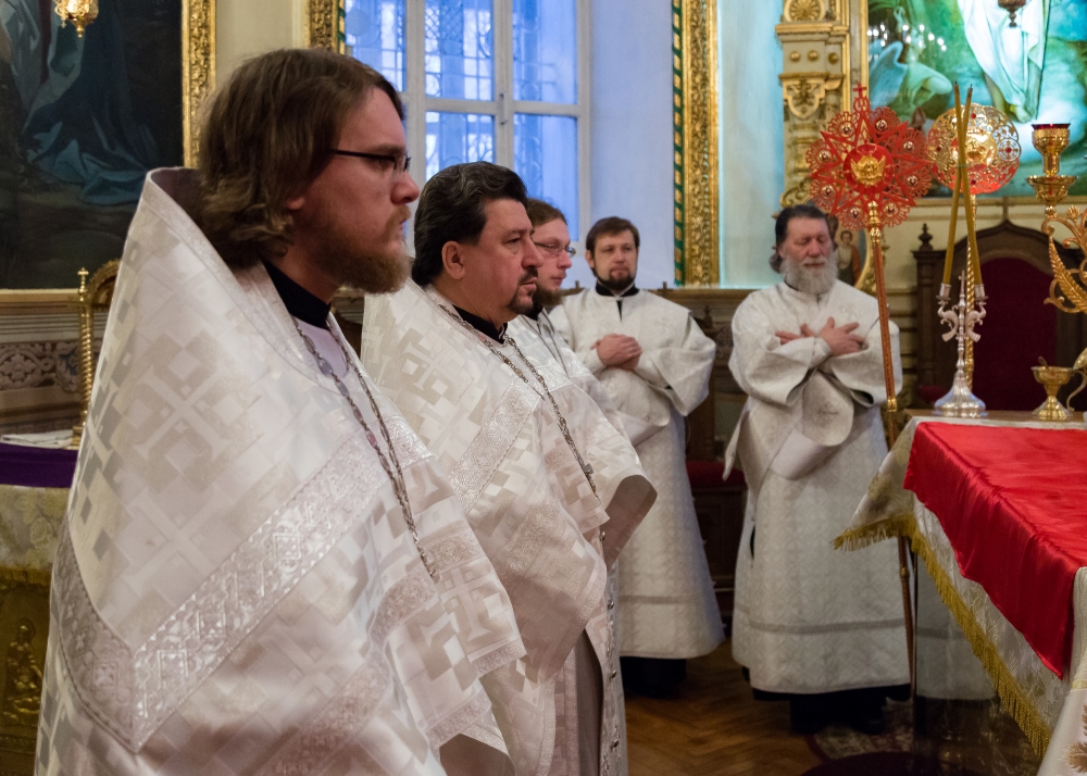 Его Высокопреосвященству сослужили: митрофорный протоиерей Сергий Лоскутов, настоятель Успенского кафедрального собора города Пензы, секретарь Пензенской епархии; иеромонах Сергий (Зайчиков), иереи Сергий Червяков, Илия Попков, иерей Виктор Сторожев, ключарь Успенского кафедрального собора горда Пензы; протодиаконы Владимир Красненков и Константин Кузьминых, иеродиакон Дионисий (Матросов), диакон Сергий Сурков.