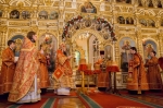 Его Высокопреосвященству сослужили: митрофорный протоиерей Сергий Лоскутов, настоятель Успенского кафедрального собора города Пензы, секретарь Пензенской епархии; иеромонах Сергий (Зайчиков), иерей Владимир Ольхов, иерей Виктор Сторожев, ключарь Успенского кафедрального собора; протодиаконы Владимир Красненков, Константин Кузьминых, иеродиакон Дионисий (Матросов), диаконы Сергий Сурков, Иоанн Акимкин.